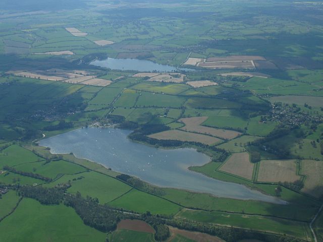 Clouds mirrored by Foxcote Reservoir, seen from the North. | Gorgeous conditions! | Looking SW along the A43 from near Silverstone past Syresham to Brackley in the distance. | Soaring with 424 over Silverstone. | Towcester from the West. | More lovely cumulus clouds ahead! |