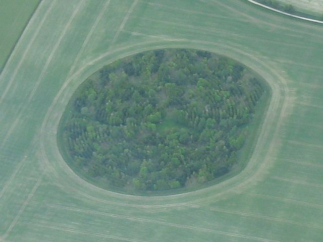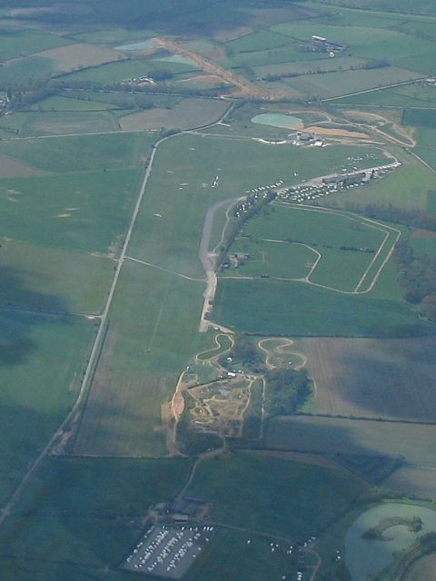 Cloudshot showing the variability of cloudbase. | Looking ahead from the back seat. | Soaring near Membury. | A gathering across the motorway from Membury. | A curious field with a circular wood in the middle. |