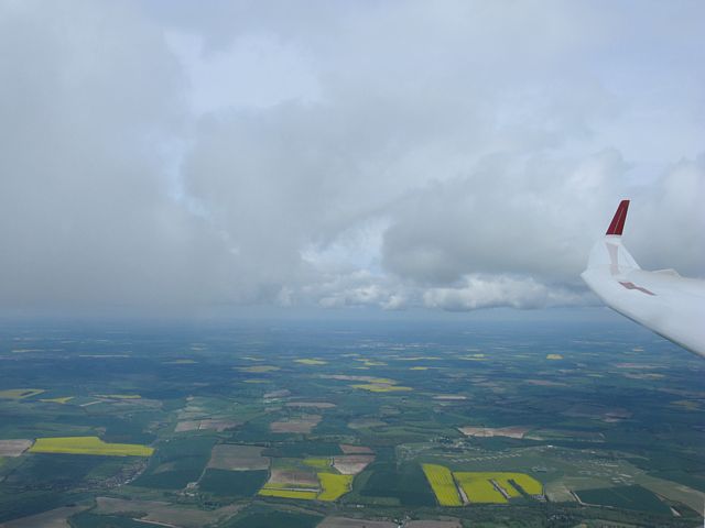 Another gliding day with some nice cloud shots and more taken. There was a lot of overdevelopment and top cover today. That and a 25 knot headwind meant I was limited to local soaring. But a fun flight anyhow.