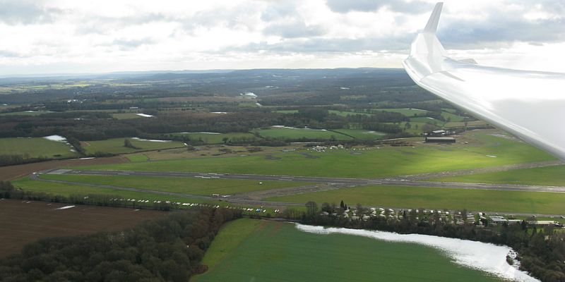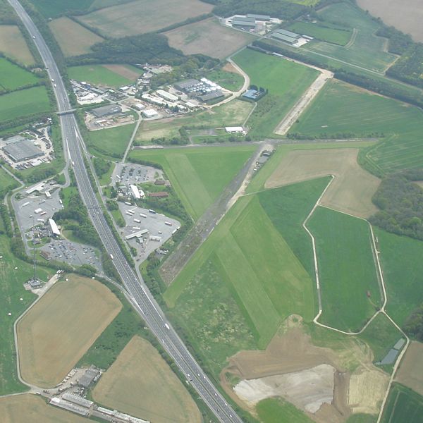 Another large patch of snow complete with footprints. | Looking at Lasham from preparation for circuit to approach. I rarely get to appreciate the view this low down as I am normally focussed on flying and landing safely. | Flying past the launch point on the way to the hangar. They have moved off to the side as a 'movement' is in progress. A jet landed on the main runway soon after we landed by the hangar. |