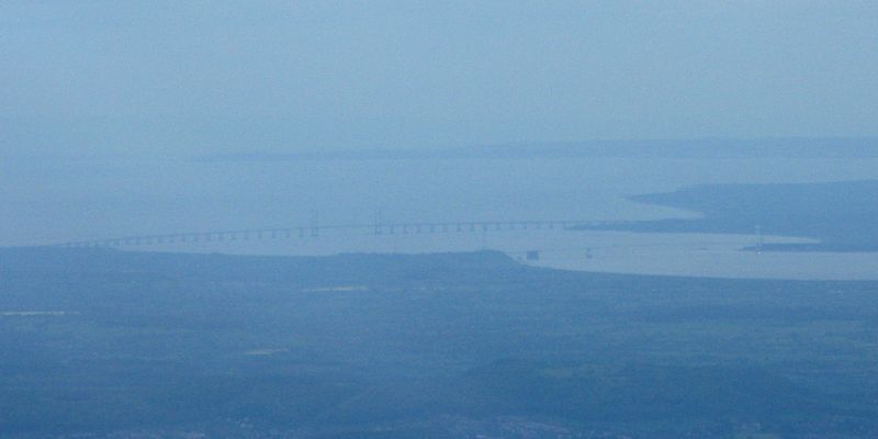 Looking over the Cotswolds ridge towards Stroud, Nympsfield and the river Severn as we get near Birdlip. By now the thickening cirrostratus is quite ominous. | A distant hazy view of the Severn Bridges. | Now on the way home, a view of the M40 as it descends from the Chilterns, and Bald Hill (Silver Spotted Skipper country). | Goring from the North. | Alex in control as we make it onto final glide. |