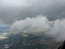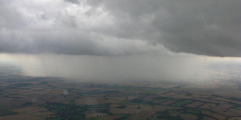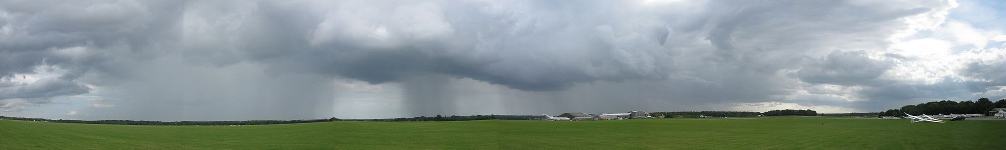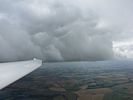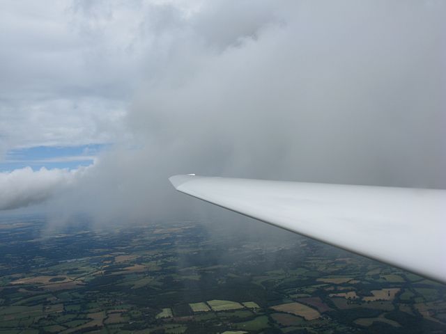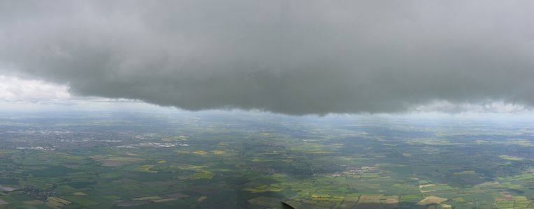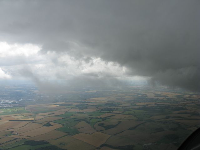 Following the other glider. | Two more shots of low cloud around me. | Getting a better view of the shower as I dive under the lower cloud on my way down to land. | A 6 shot panorama of the shower as it passed by the airfield after I landed. We did get some light rain but the main cells missed us to the South. |