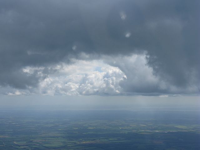 Running West along the edge of the convergeance, revealing an embedded shower. | Another glider also enjoying the spectacle over Popham. | Another shot of the embedded shower. |