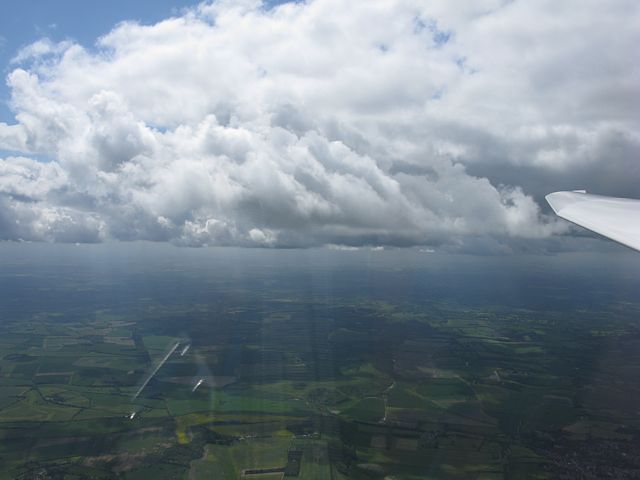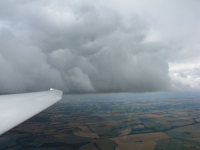 The highlight of today was not the 251km that I flew, but the end of the flight when I explored a spectacular sea breeze convergeance passing over Lasham and Basingstoke. At one point I was 4500 feet above Lasham at inland cloudbase, while the convergeance cloudbase was down at about 3000 feet.