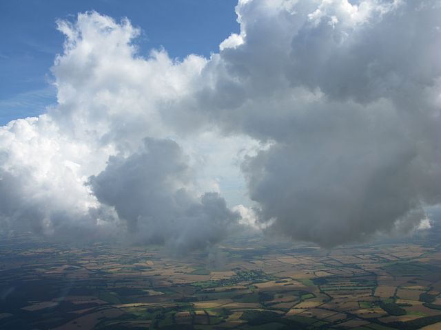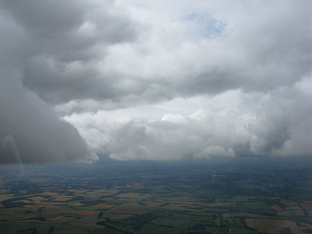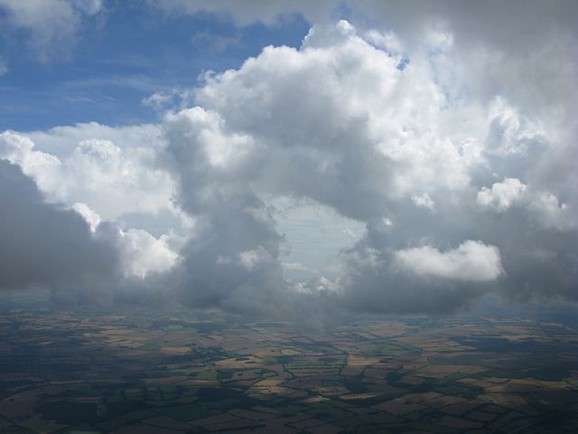 I took cloud pictures during a challenging flight. There were some strong thermals around, but the wind was blowing 30kts at cloudbase (5000 feet above Lasham) and that distorted the thermals a lot making it hard to centre. It was very slow pushing upwind. First time upwind it wasn't streeting very well and it was difficult. After I came back from Ashbury to Kingsclere, I pushed upwind again, this time under a huge cloud street that was starting to spread out. On the way back I practiced a couple of cloud climbs. At one point I climbed all the way to 6000 feet above Lasham, which was FL65. I came back as the overdevelopment started to get worse and showers started to form. A pretty good day considering it was pouring down earlier in the day and an associated cold front didn't clear until 10:45AM. Then it took only an hour to get decent soaring conditions. I launched at noon and was up for over 3 hours.
