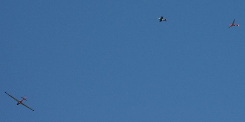 Lasham Discuses SH3 and SH4 local soaring in blue thermals. | 2 K13's in the sky. One on tow (by a Robin I think). |