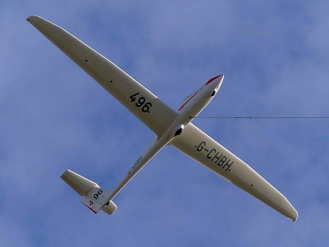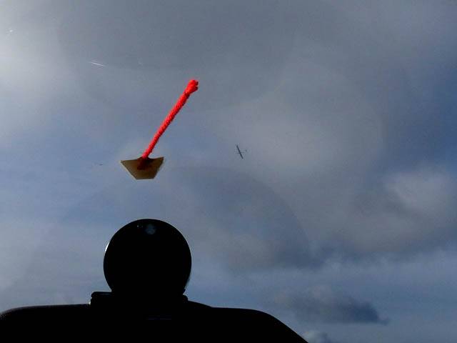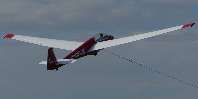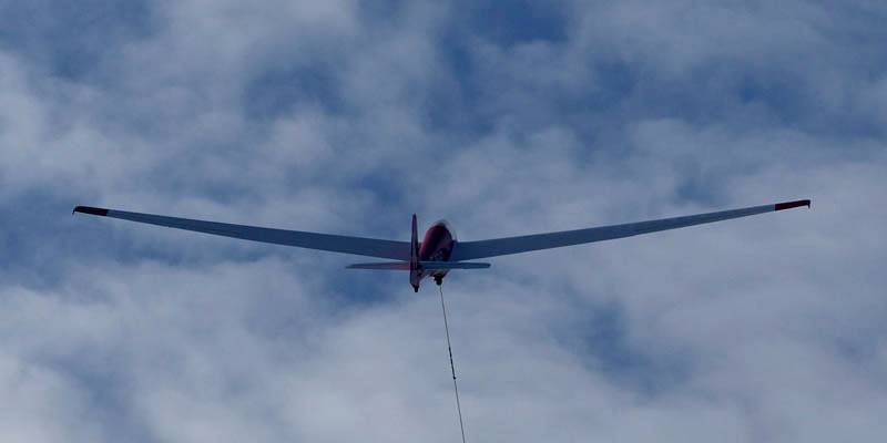 K13 aerotow and winch launch. | Discus being launched for a test flight. | Another nice cloudscape. | Airborne K13 and K21. |