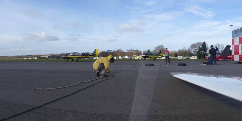 180 degree panorama of the launch point with SH3 2nd in the winch queue. | The new hangar is coming along nicely. | Waiting for a jet to be towed past (not a full scale movement) before launch. |