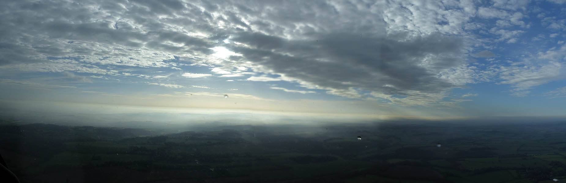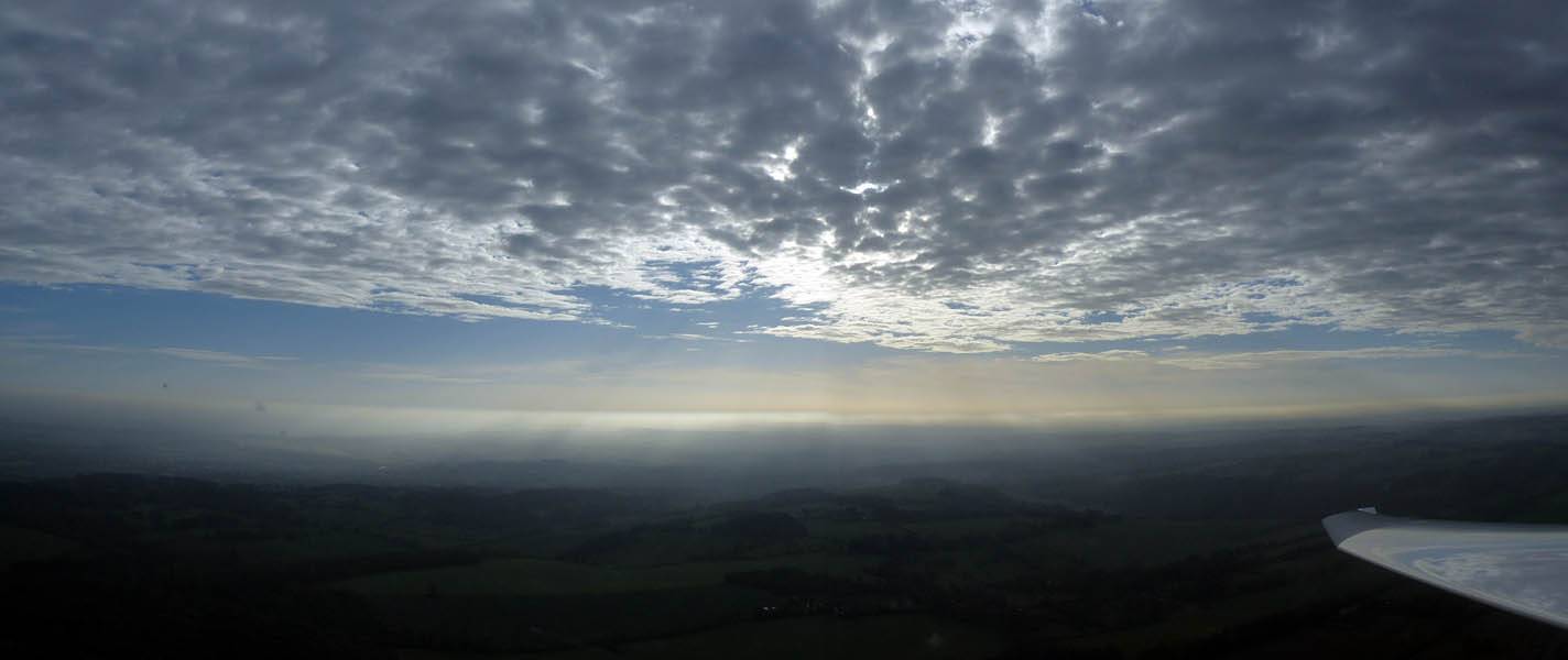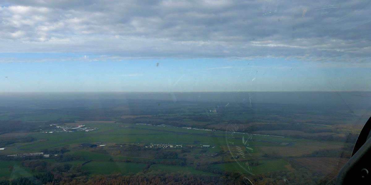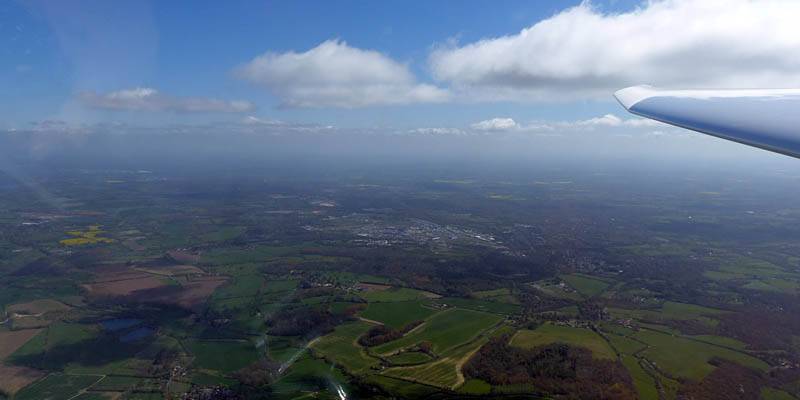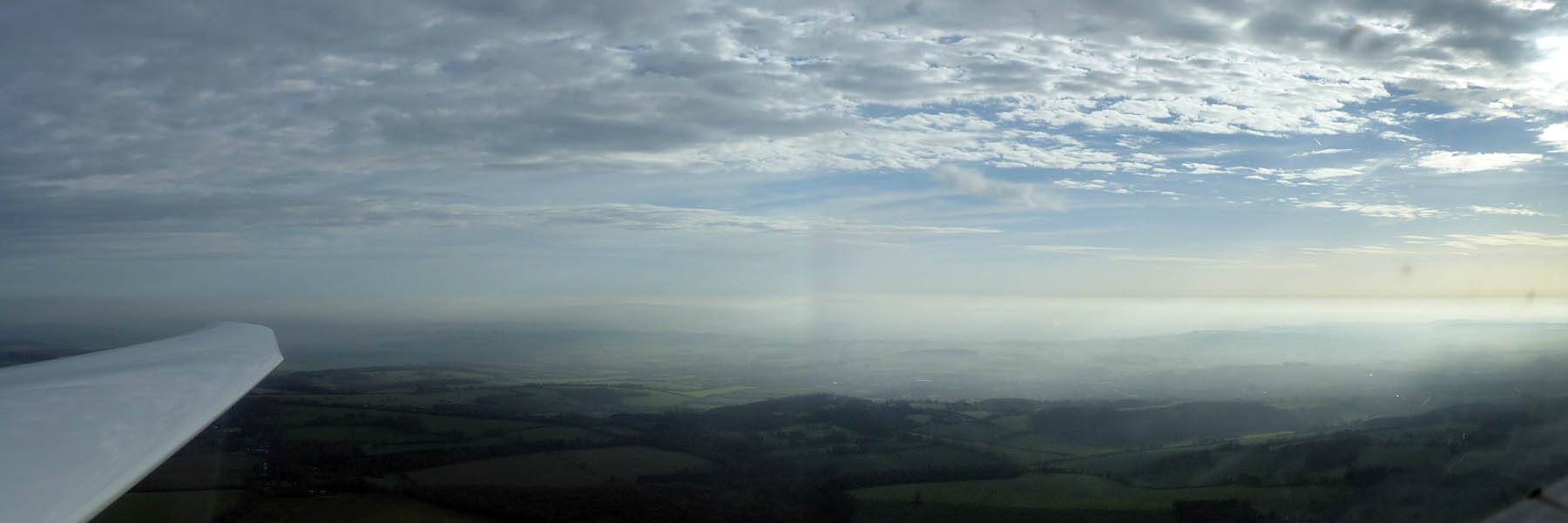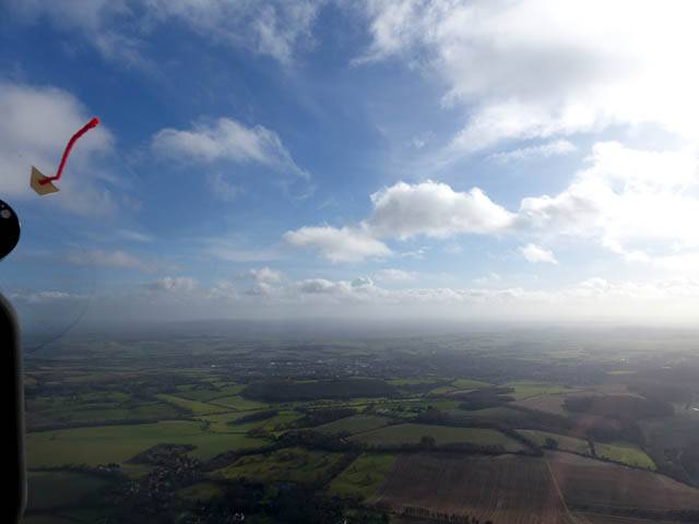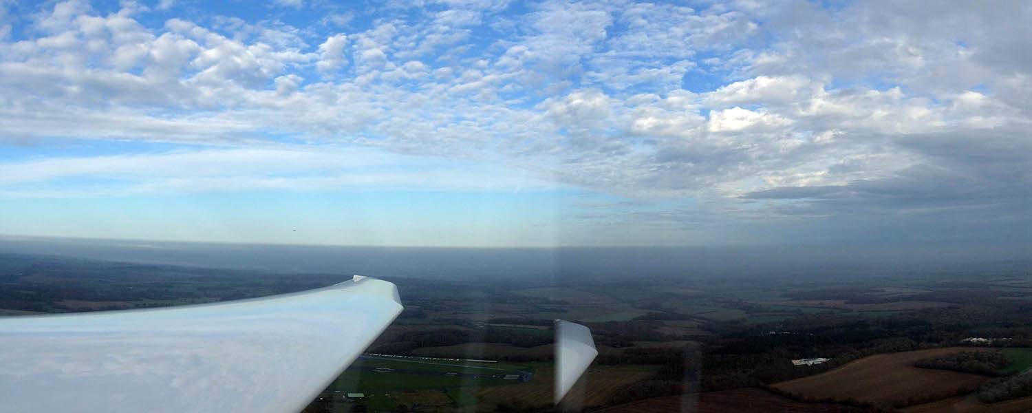 Spectacular hazy views to the South. | Lasham Airfield from the Southeast. | To the North it is obvious how strong the inversion is, and how hazy it is below. |
