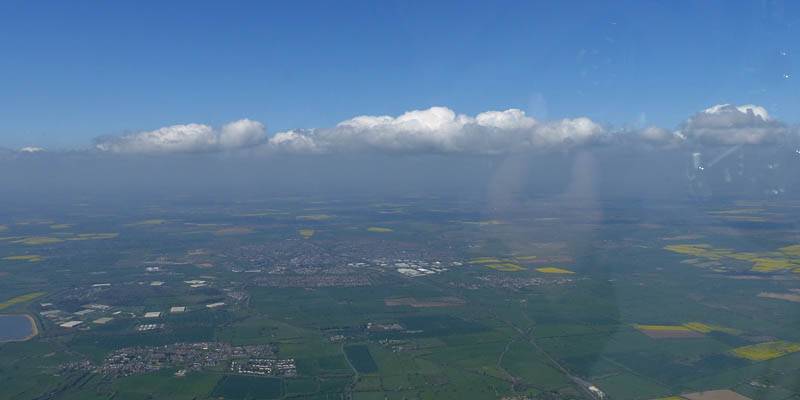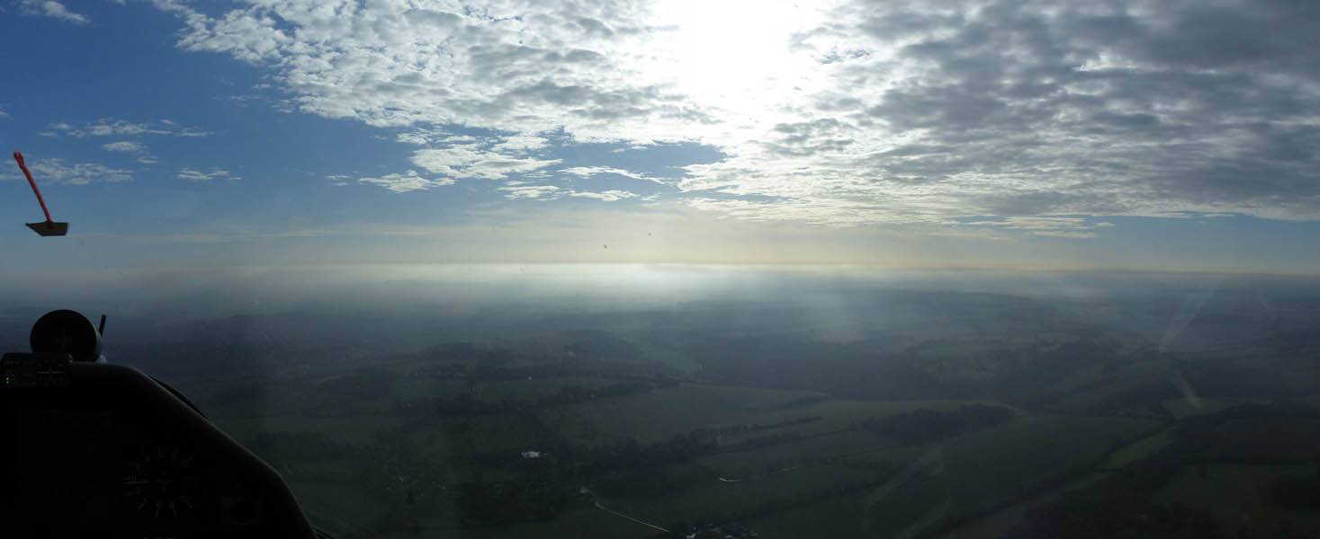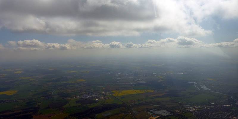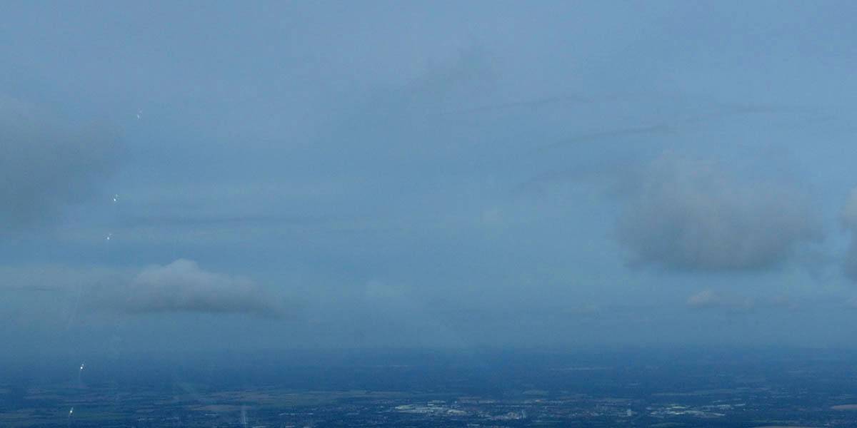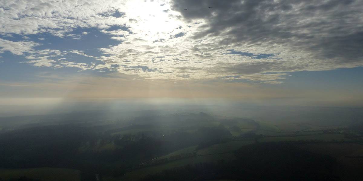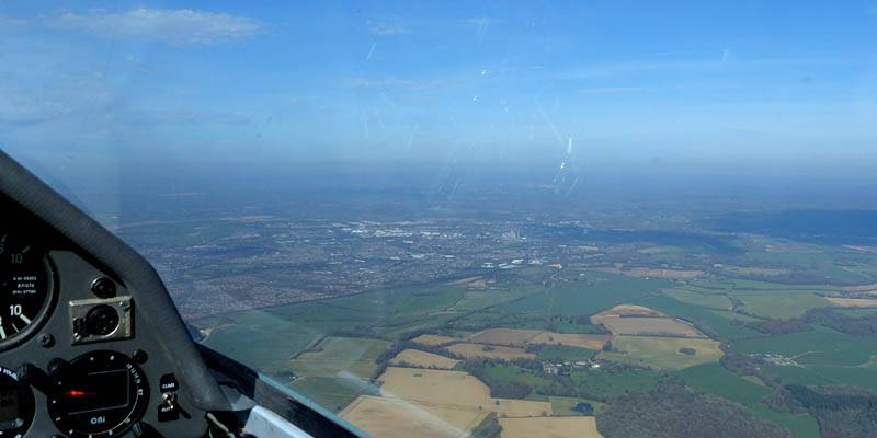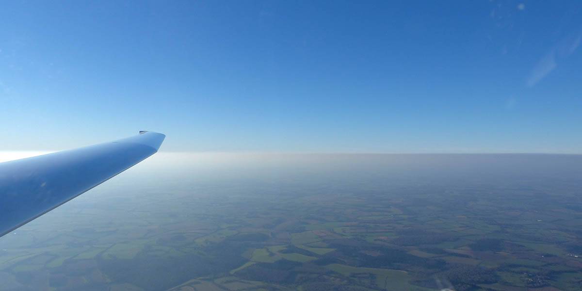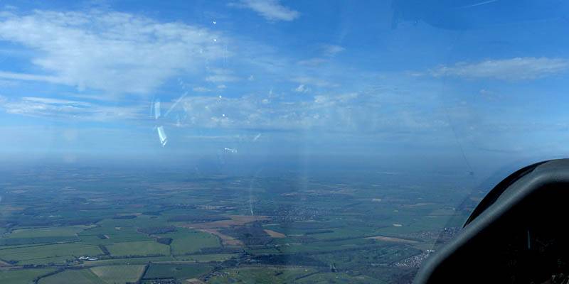 Spectacular hazy views to the South. | Lasham Airfield from the Southeast. | To the North it is obvious how strong the inversion is, and how hazy it is below. |