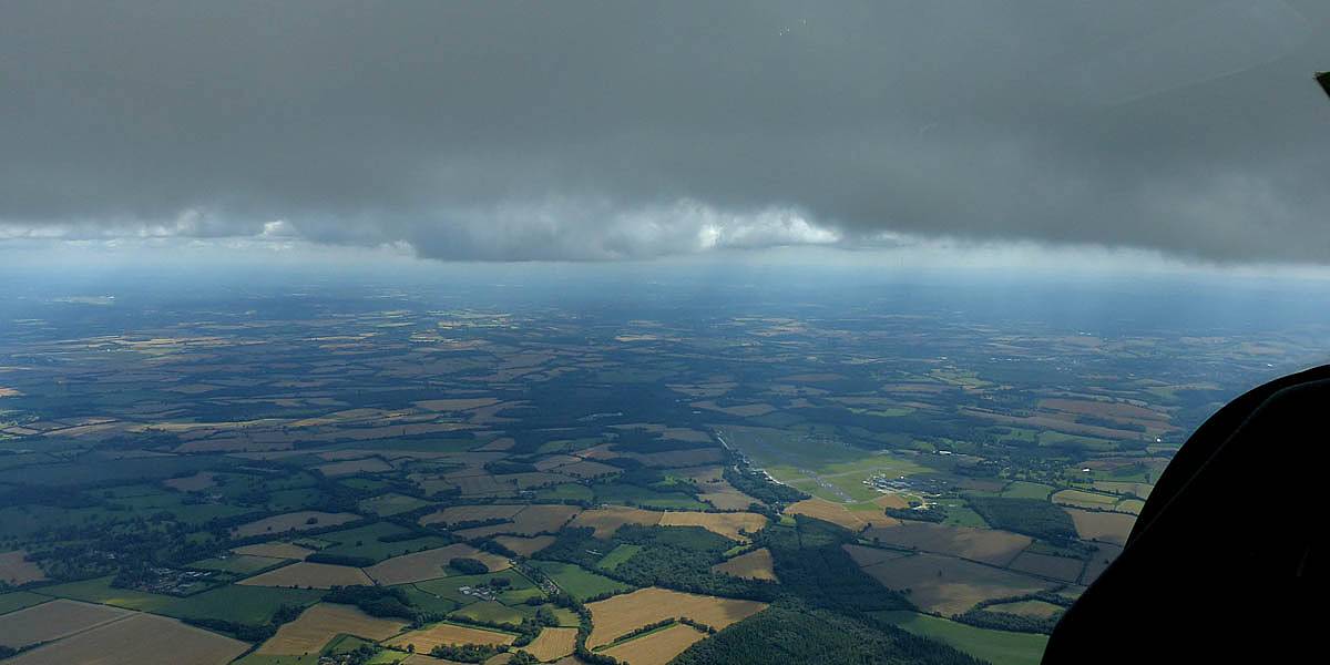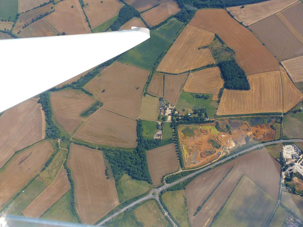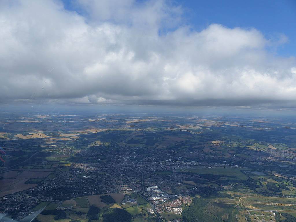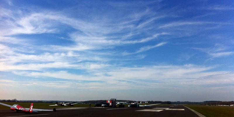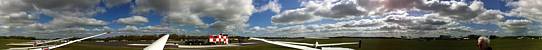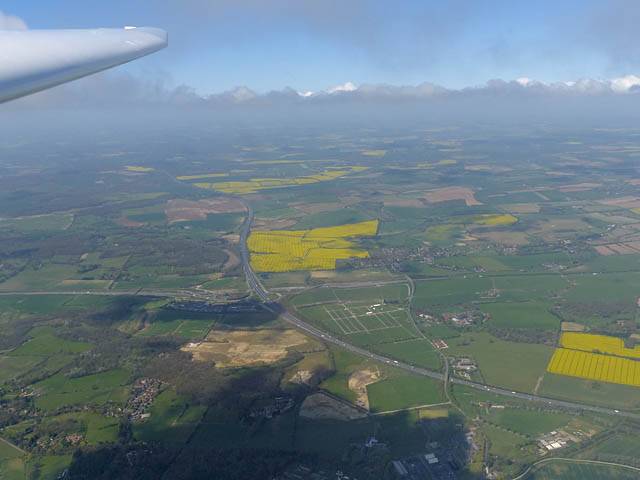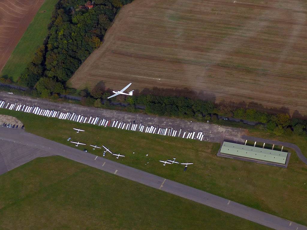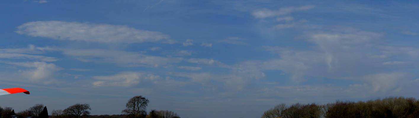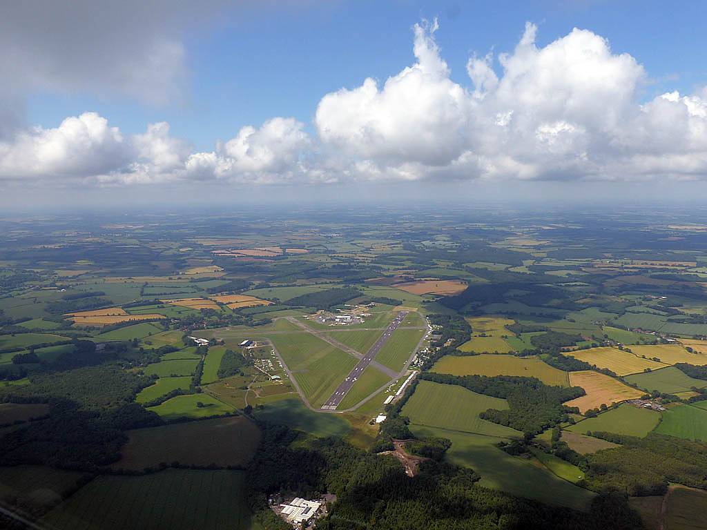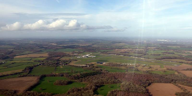 Lasham Airfield from the Northeast. | One of the other Discuses soaring below me. | The launchpoint on runway 27 from the North-Northeast. | Inspecting the scrappy clouds towards Basingstoke the North. |