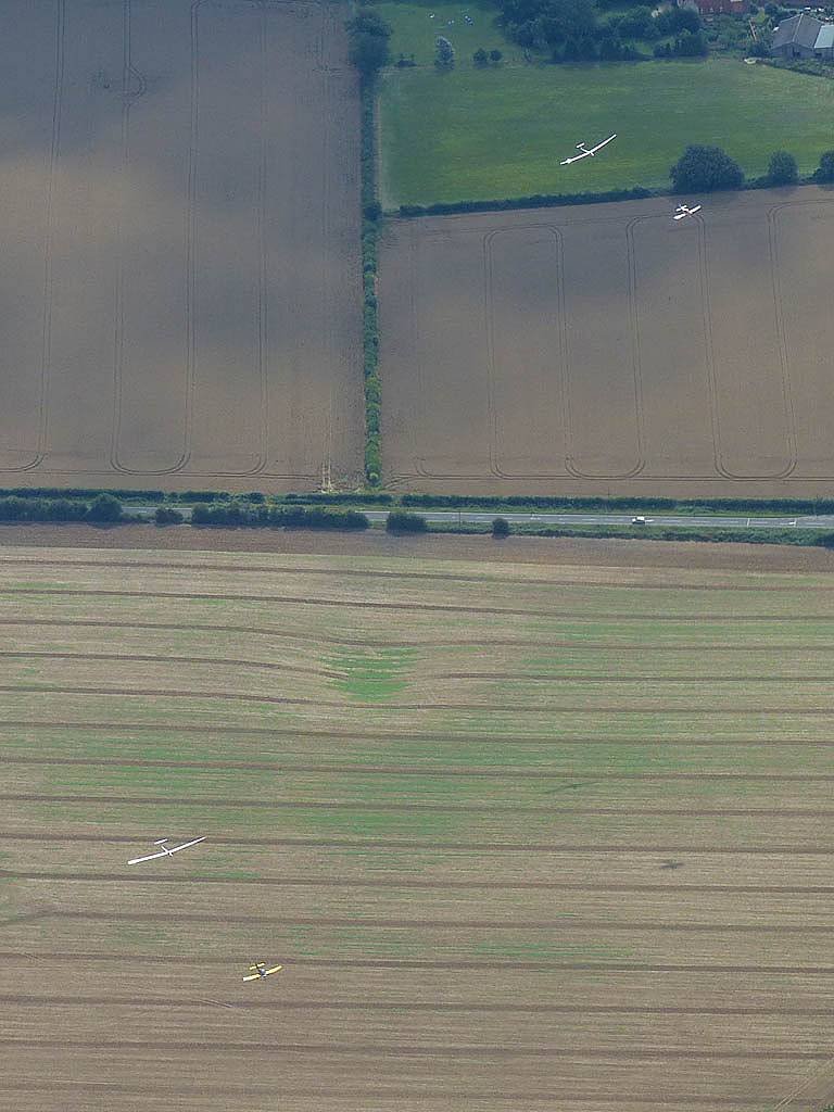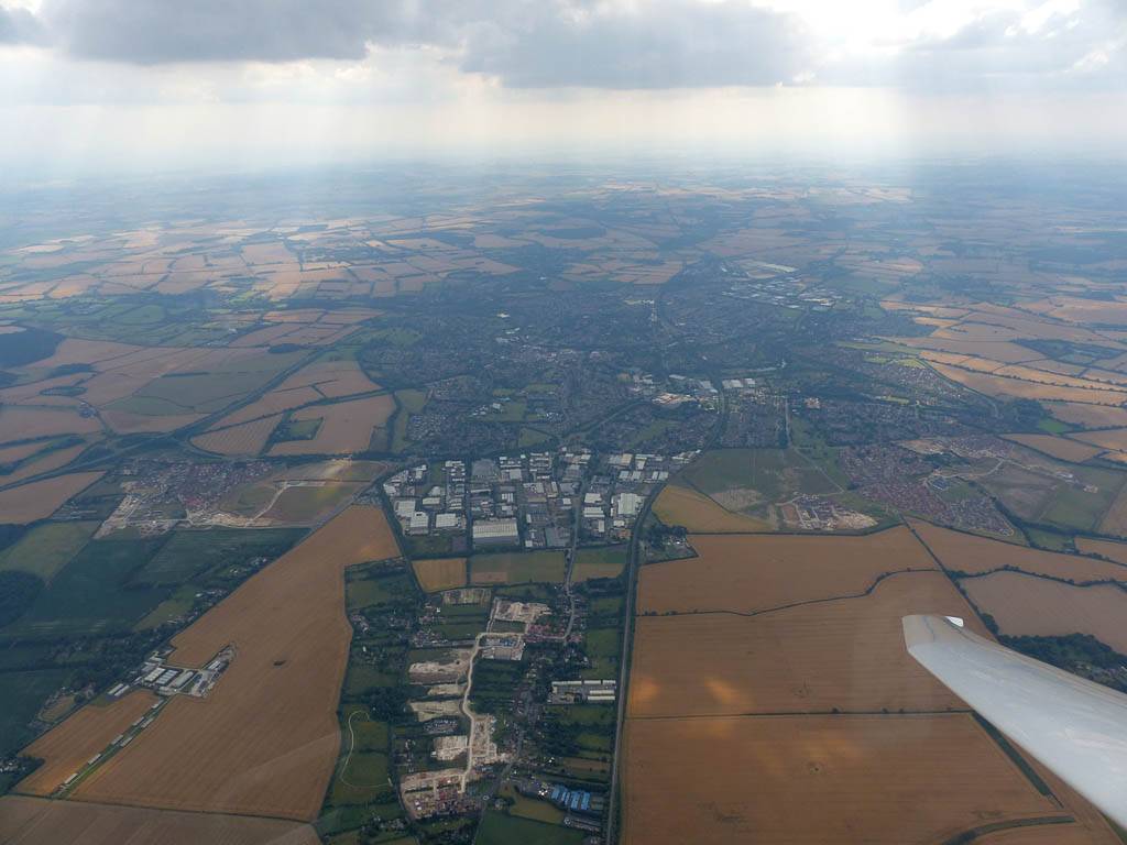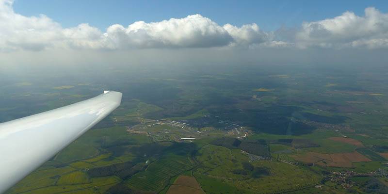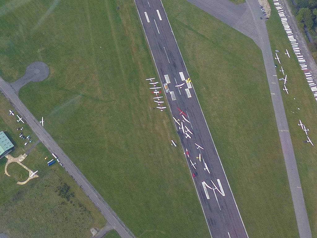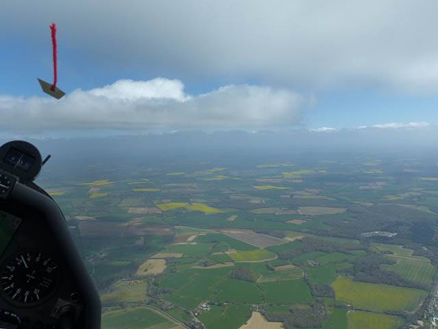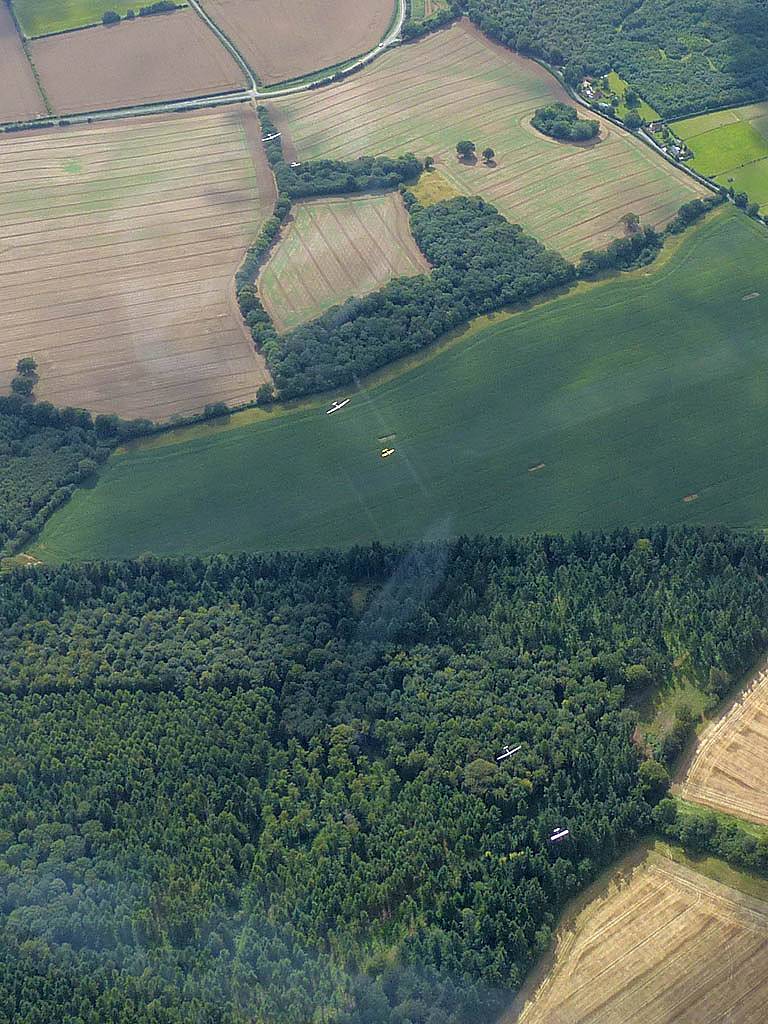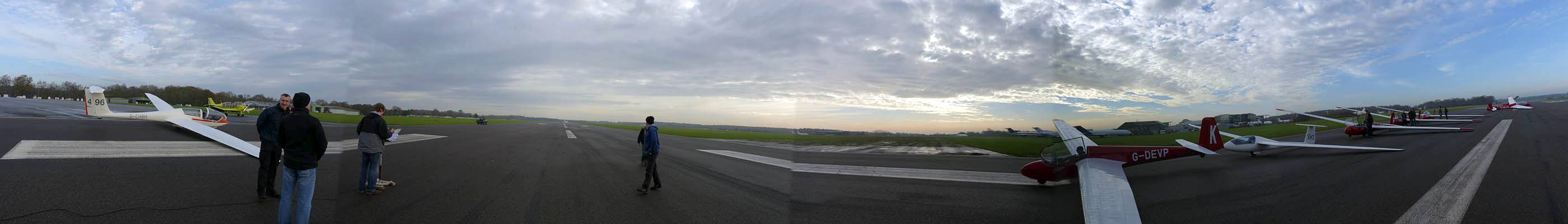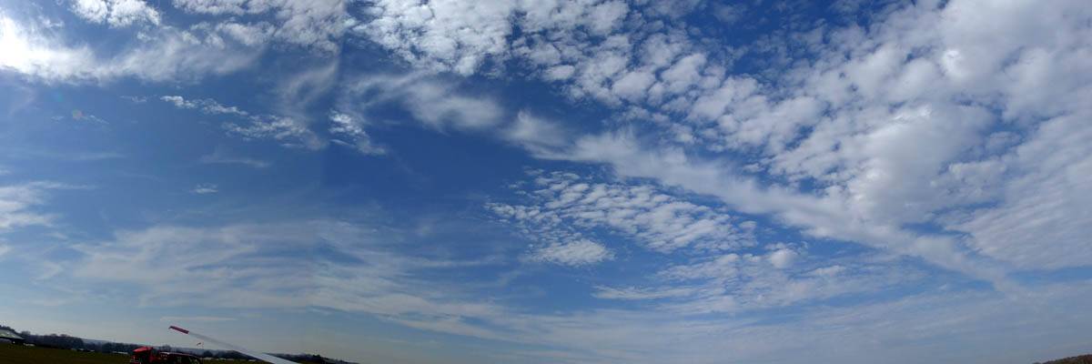 Lasham Airfield from the Northeast. | One of the other Discuses soaring below me. | The launchpoint on runway 27 from the North-Northeast. | Inspecting the scrappy clouds towards Basingstoke the North. |