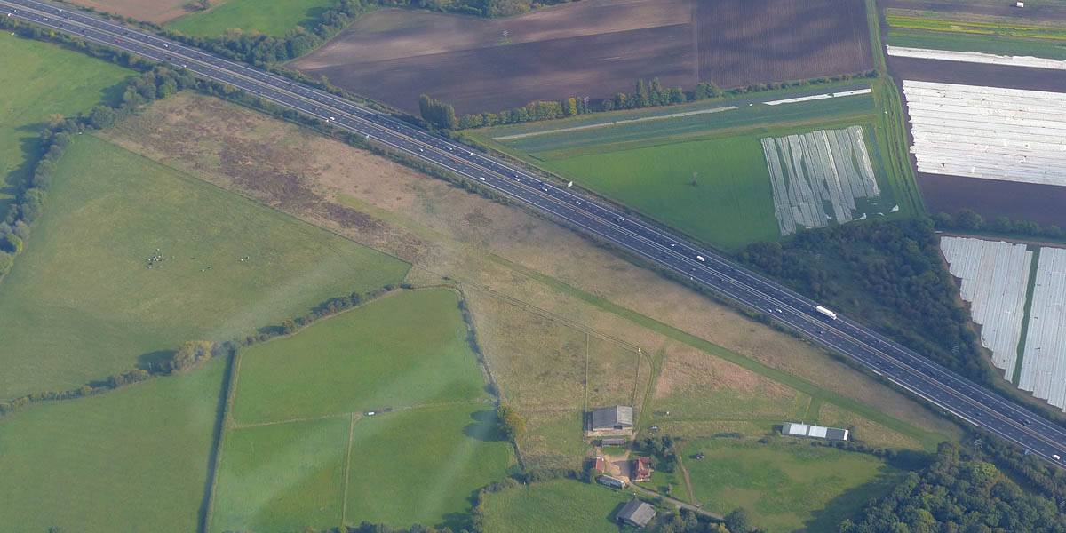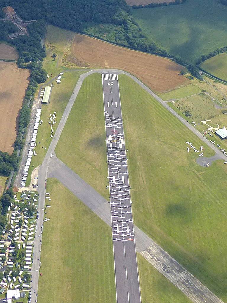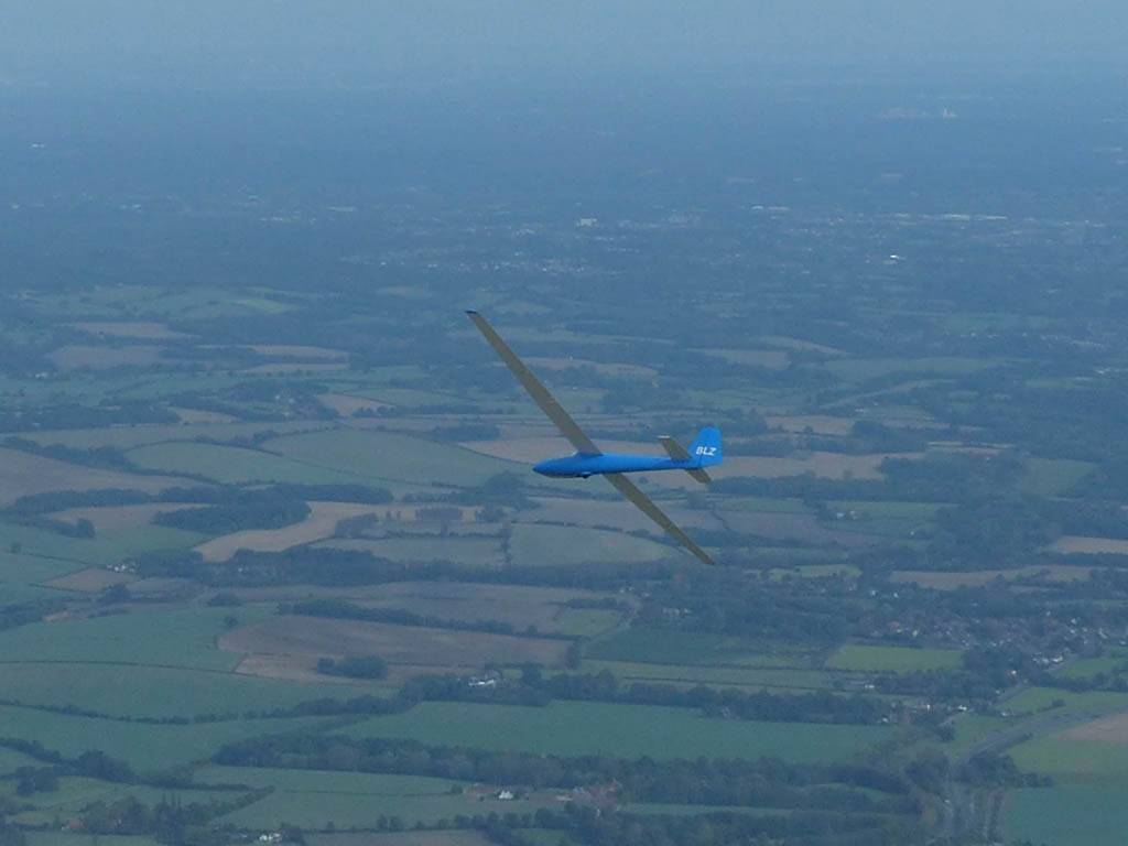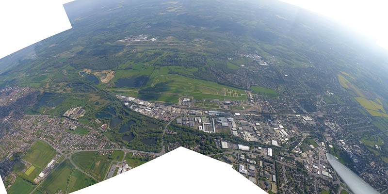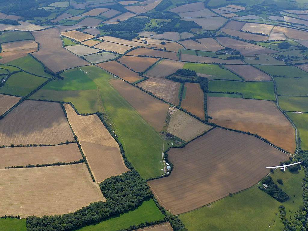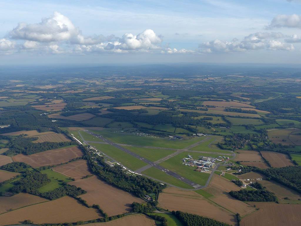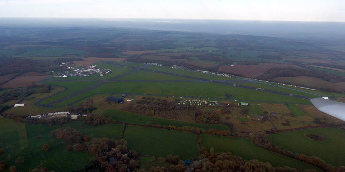 Lasham Airfield from the Northeast. | One of the other Discuses soaring below me. | The launchpoint on runway 27 from the North-Northeast. | Inspecting the scrappy clouds towards Basingstoke the North. |