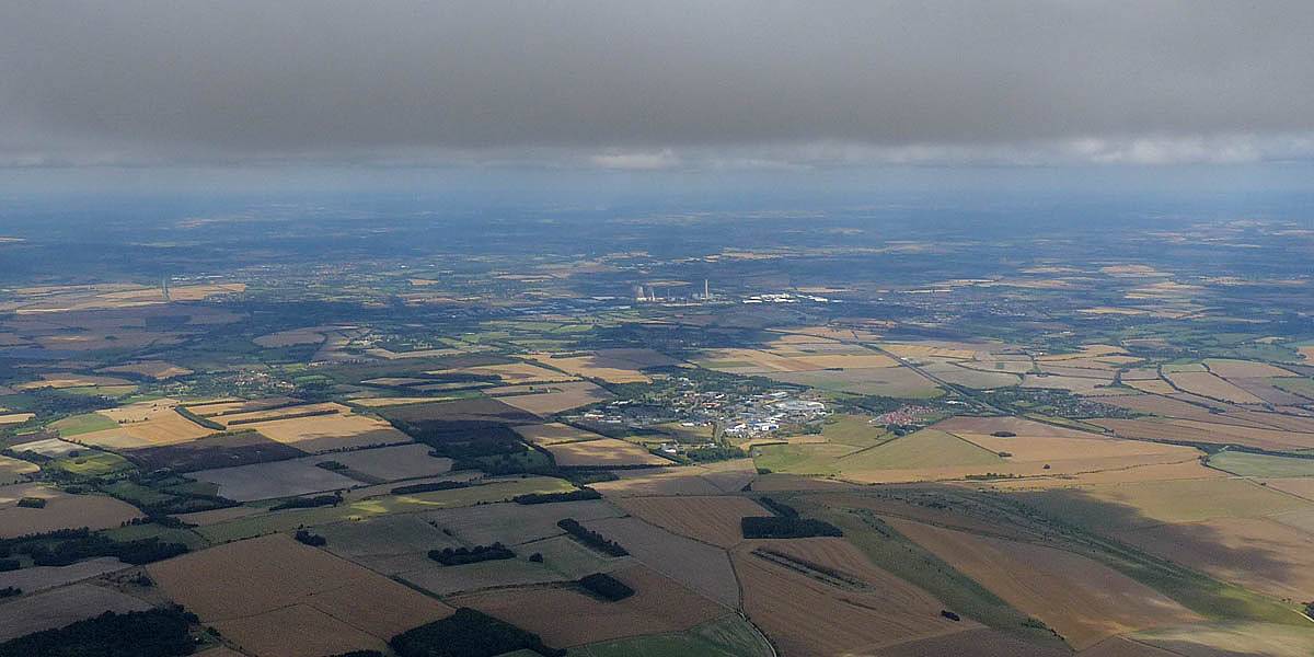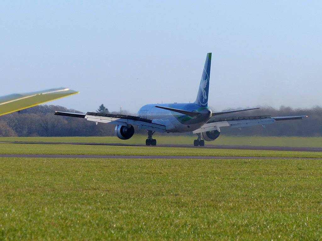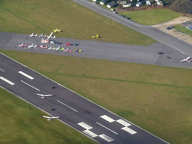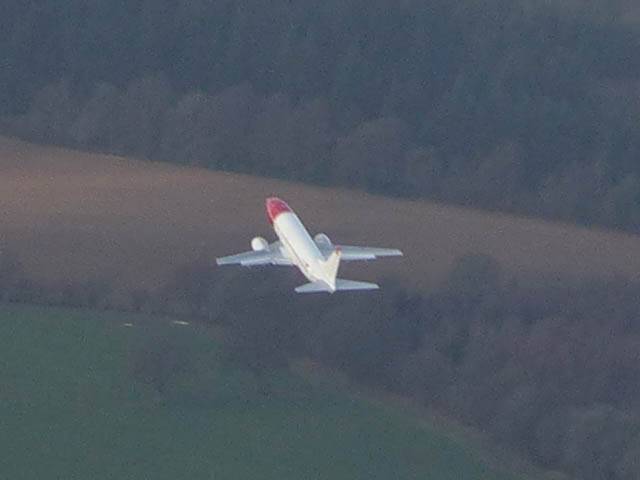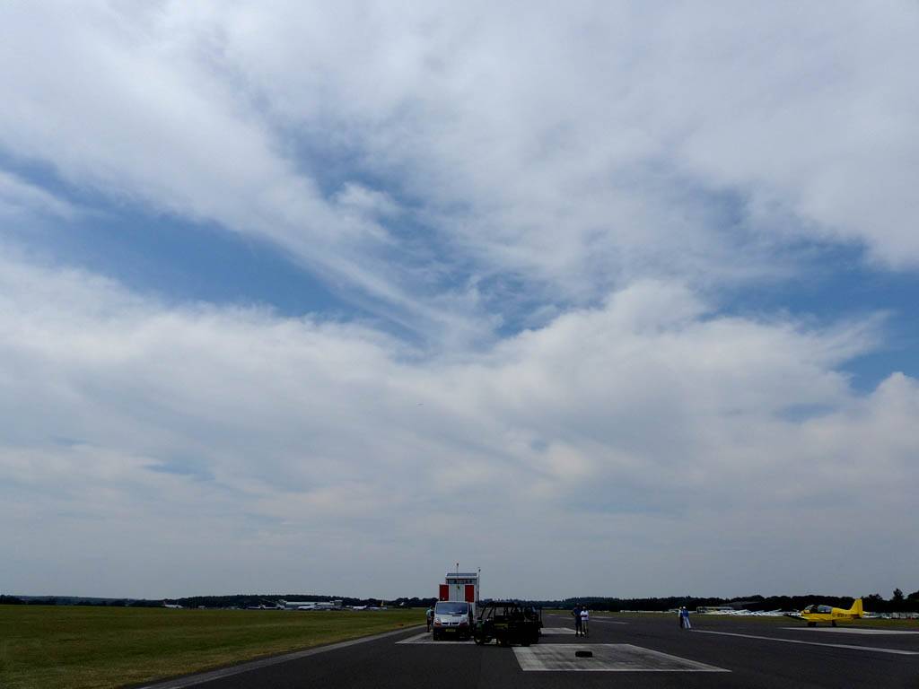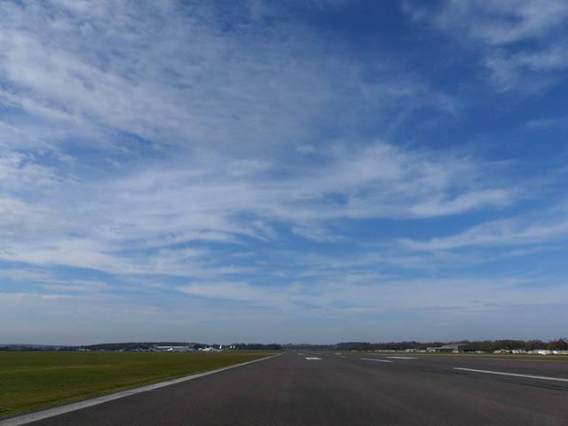 Lasham Airfield from the Southeast. | A jet taking off from Lasham. | Closer view of the launch point from the Southeast. | Bigger cumulus forming. |