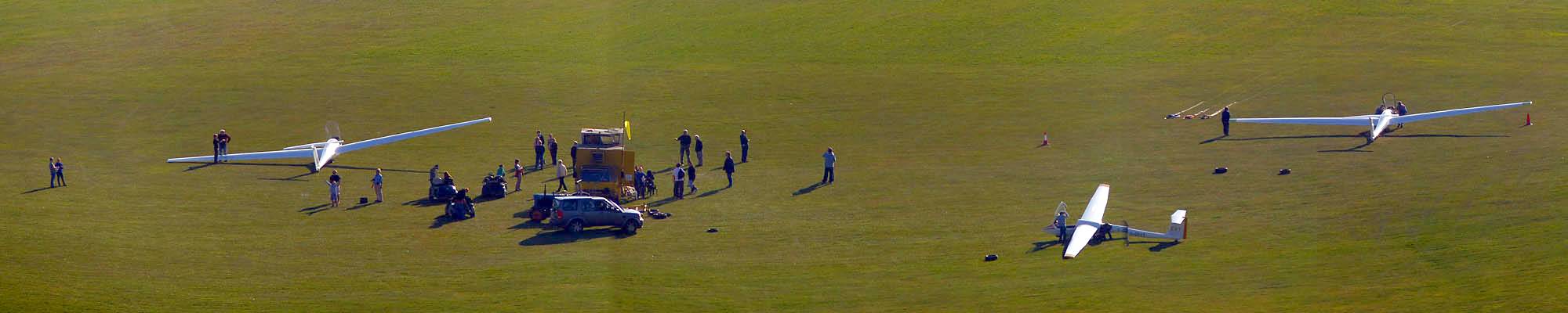 Looking down at LGC launch point from Five Knolls. | Glider 566 on circuit. | Another shot of the LGC Robin tug. |