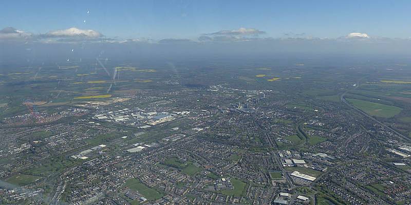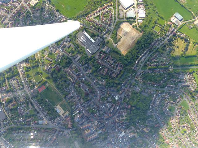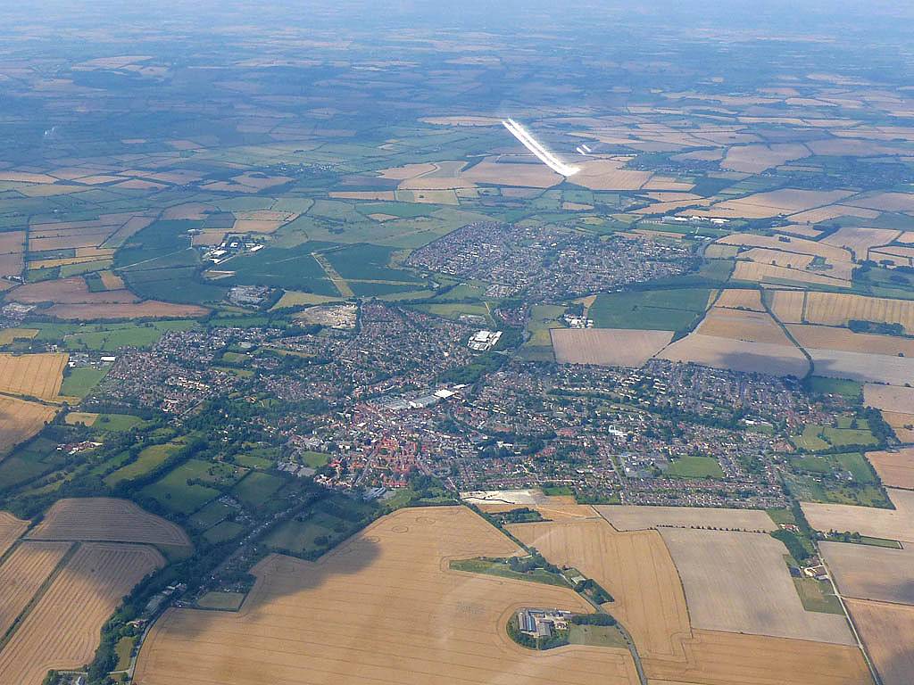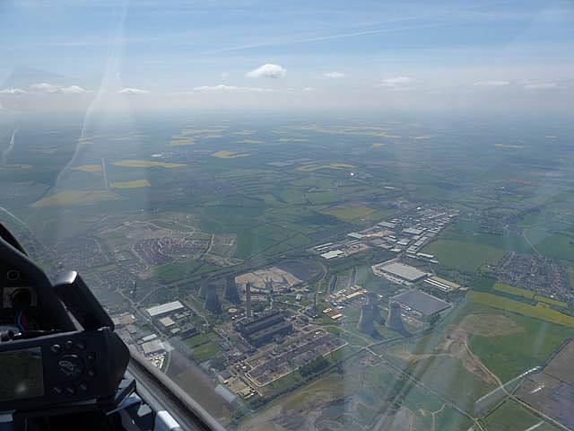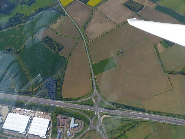 Turning Towcester (the turning point is the roundabout where the A43 crosses the A5). South is up. | Soaring my way back home and sharing the thermal with another glider near Buckingham. | Looking South towards Didcot from the Oxford area. |