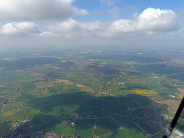 More fun above cloudbase. | Scotland Farm air strip near Hook. | M3J5 from the Northeast. | Enjoying the last of the larger clouds before they clear away. |