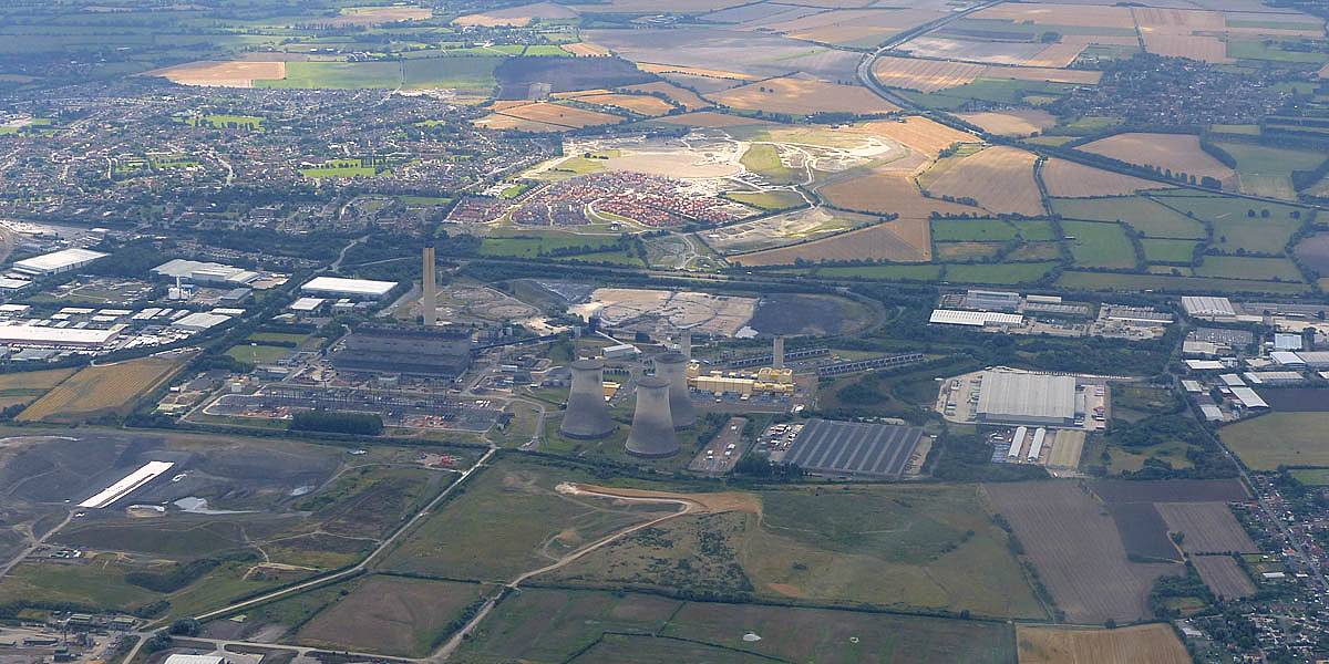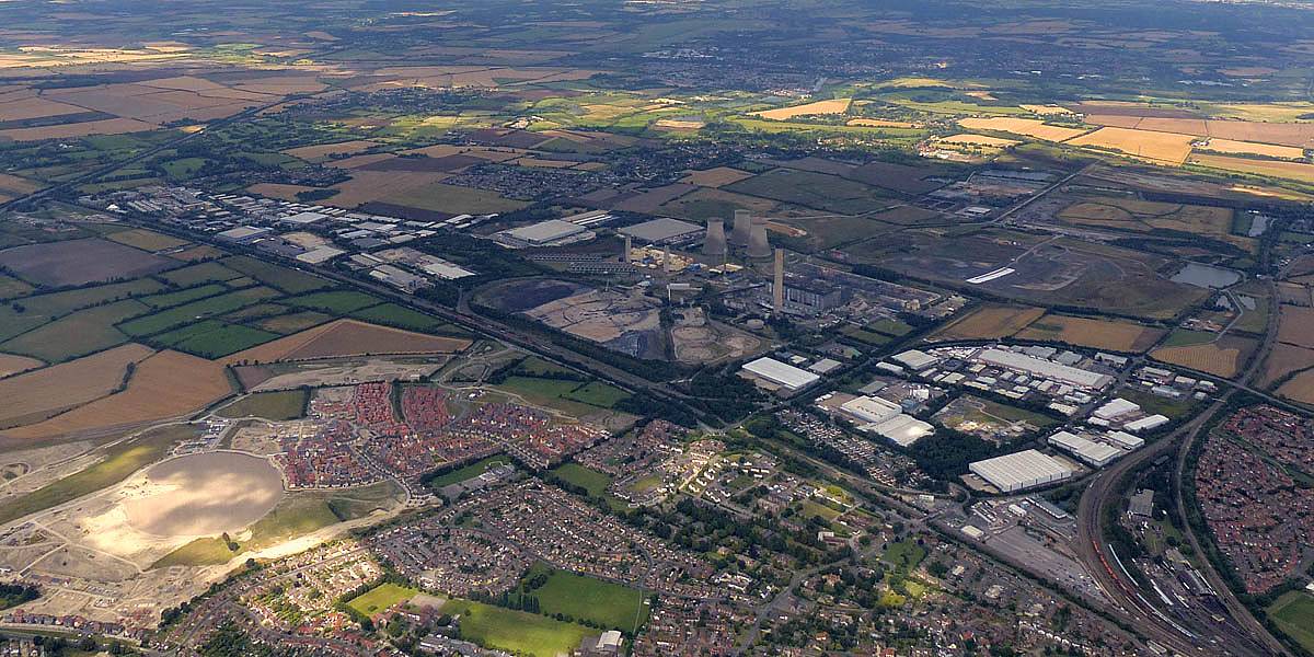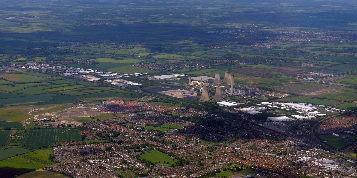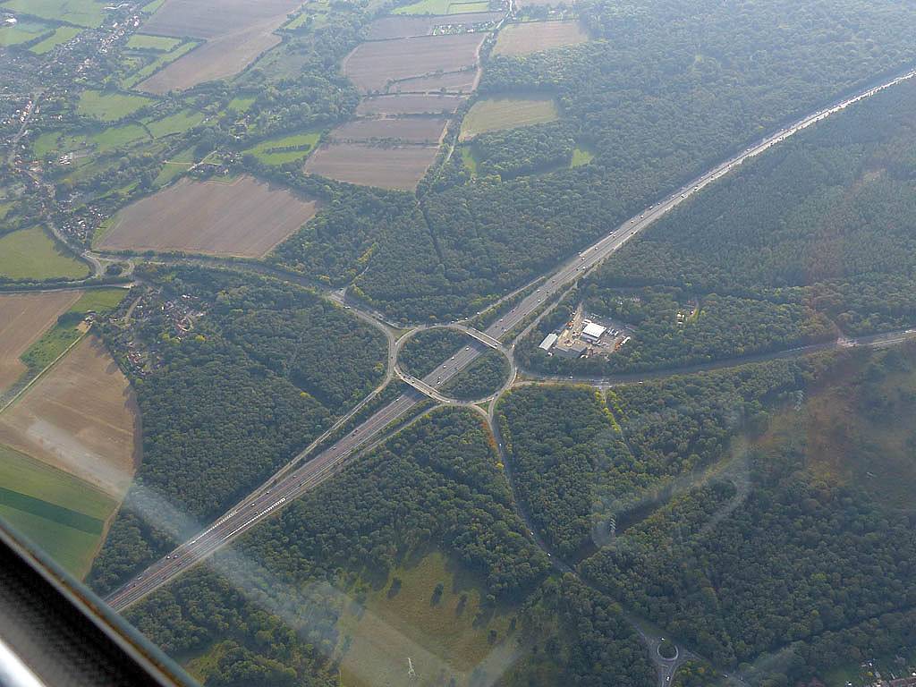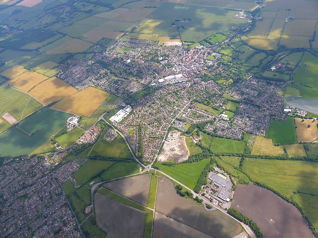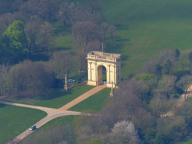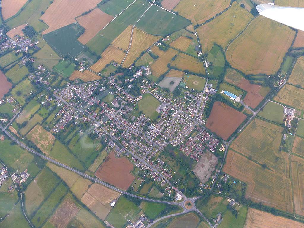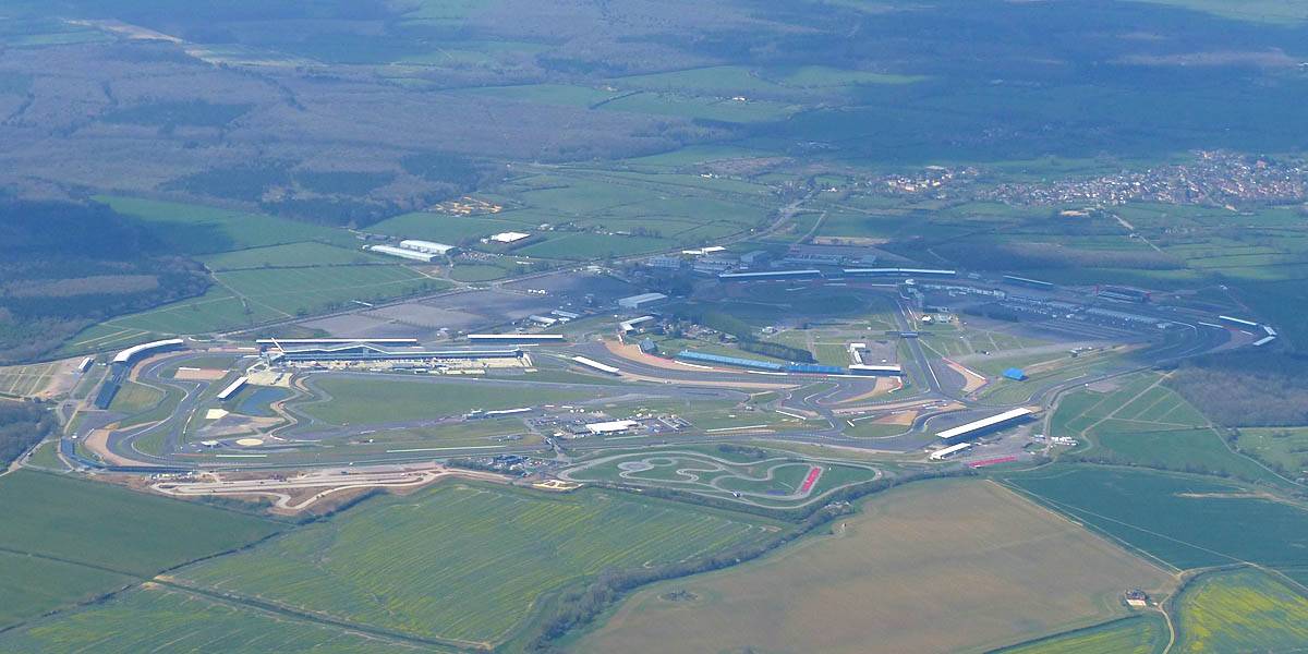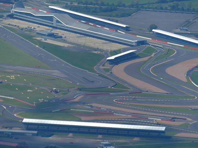 Bicester from the Southeast. | Calvert Junction from the West. | The Corinthian Arch from the East as I pass Buckingham. | Silverstone Racetrack from the East-Southeast. |