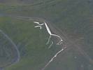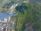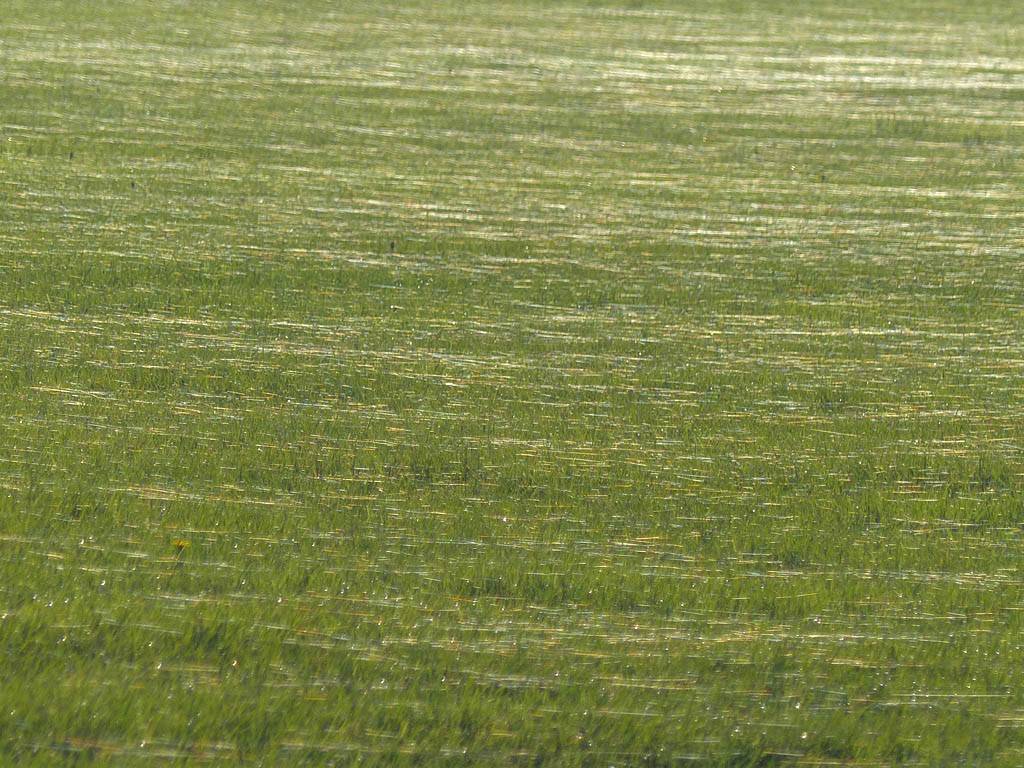 Looking down at the runway and North side from the Southeast, and beyond to the strong inversion. | One more irresistable view to the South. | Gossamer coats the airfield grass back on the ground. |