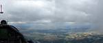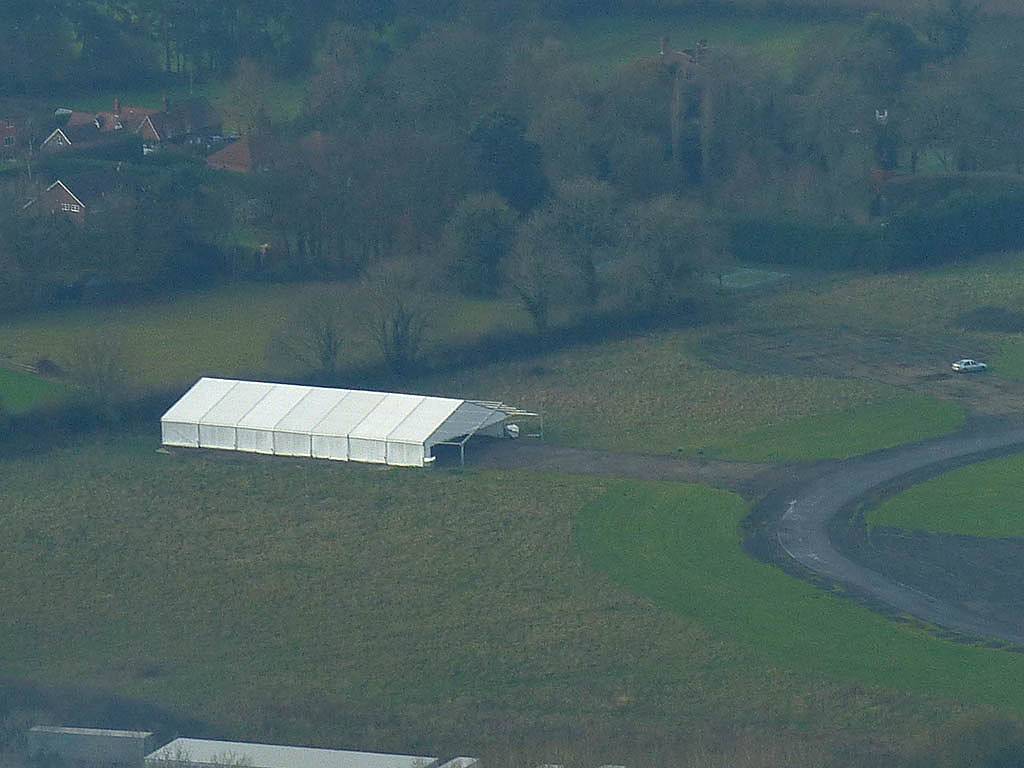A K13 being launched by a Robin tug. | Continuing to admire the view as the clouds slowly clear. | Looking down at the temporary hangar on the South side where the training gliders are stored until the new hangar is complete. |
