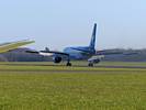 A strong inversion below me after aerotowing to 4000 feet. | Preparing to aerotow again from the grass while a jet lands on the runway. |
