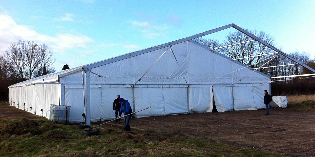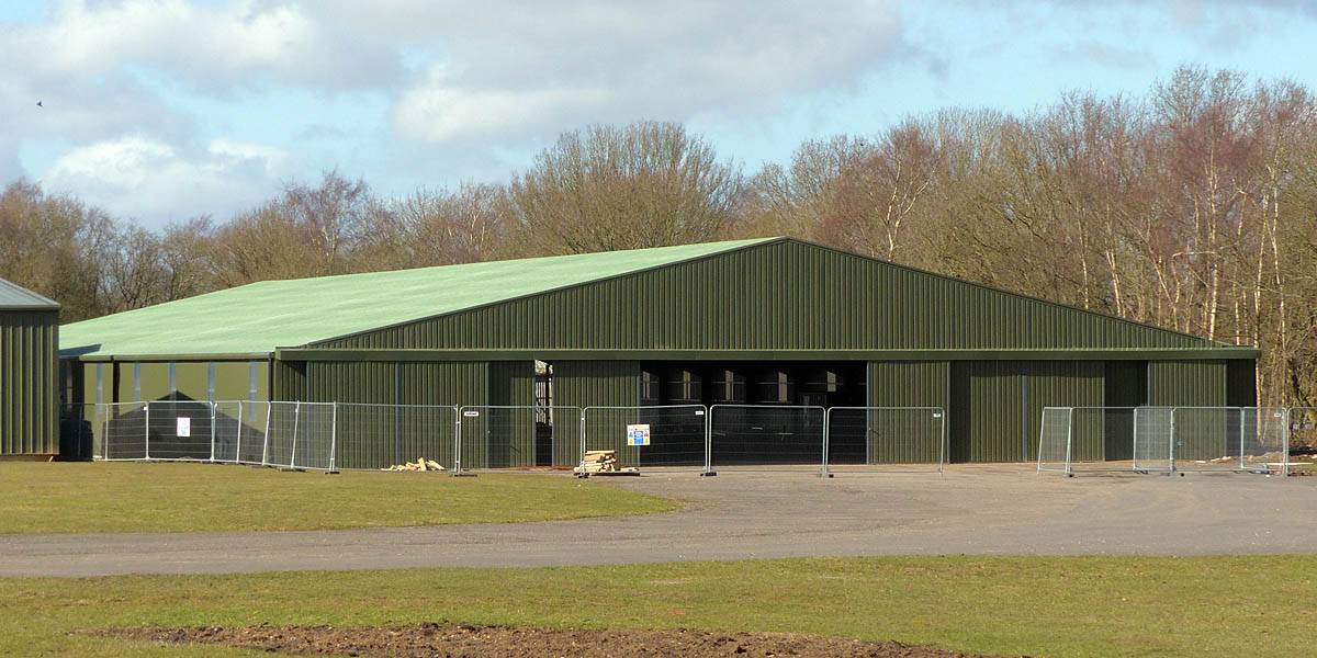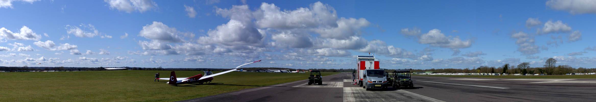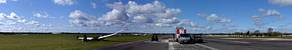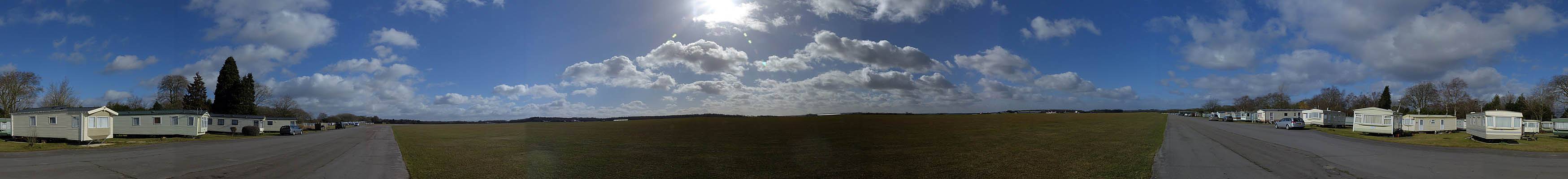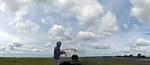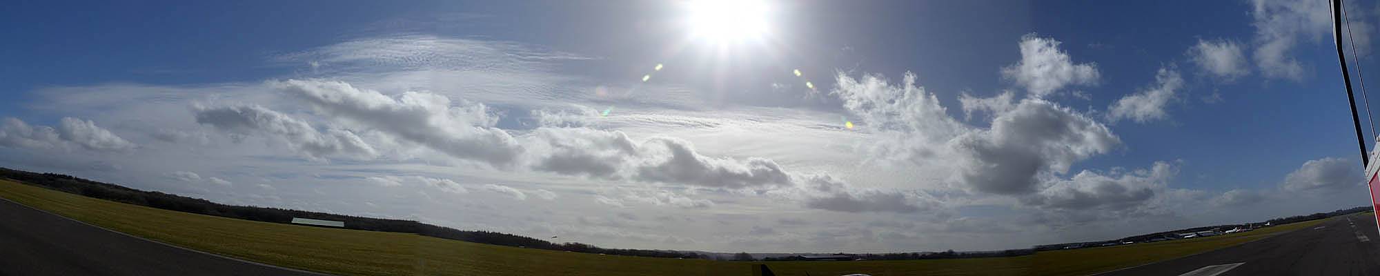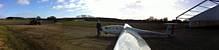 360 degree panorama from the peri track on the way back to the clubhouse. | The new hangar is almost complete. Doors only just attached. | Back at the launch point, another nice cloudscape to the South. |