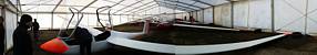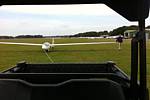 Visiting the temporary hangar on the South side to get the K21's out. (It's too windy for the K13's.) | Towing the K21's out. |