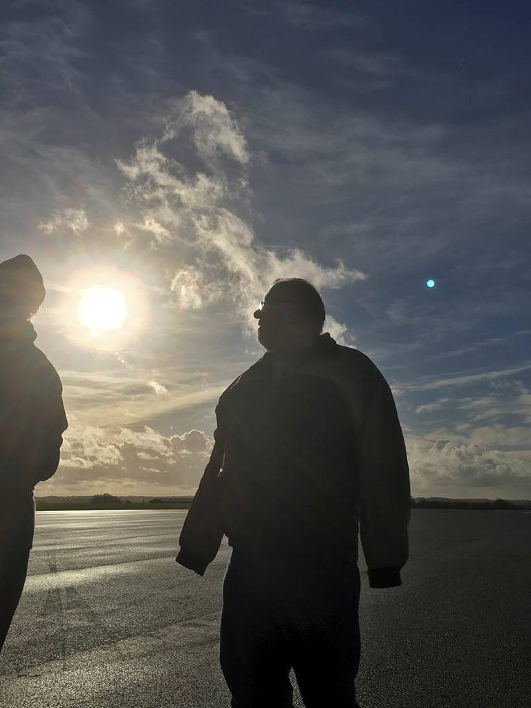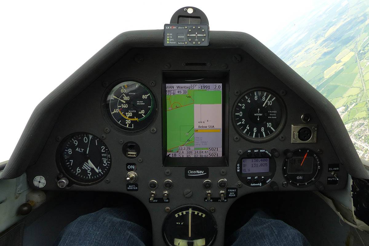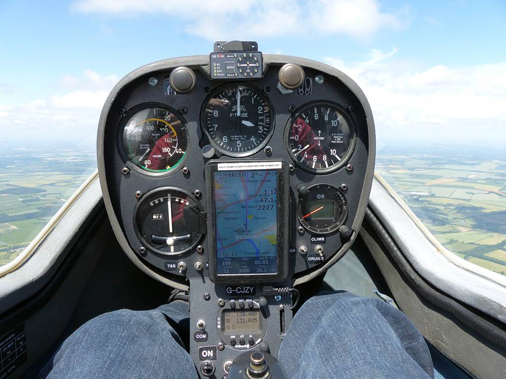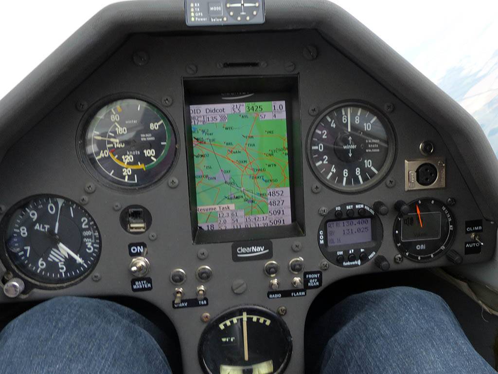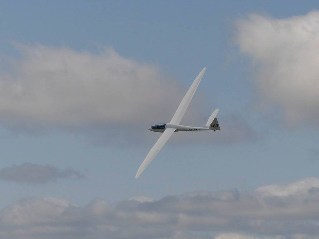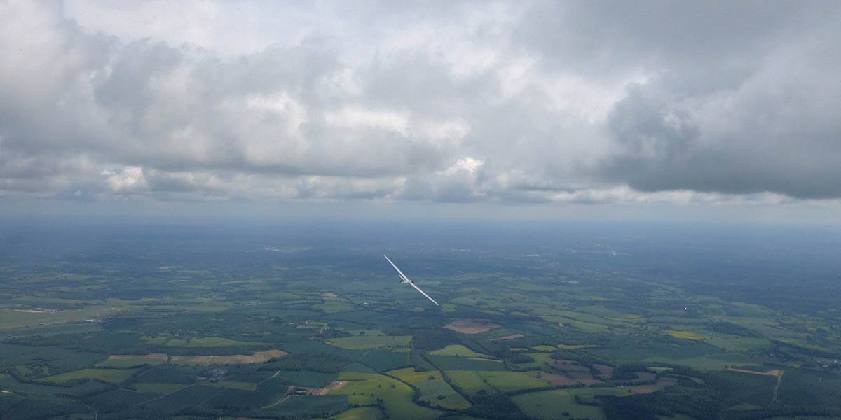 Testing out the selfie pole while waiting in the aerotow queue. | An arty shot of Nigel Pocock. The cloud looks like steam rising off his head. | Heavenly views from 4000 feet soon after I released from tow. | Deploying the selfie pole with the GoPro on the end. Glider trimmed and flying itself safely at 50kts. |