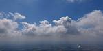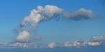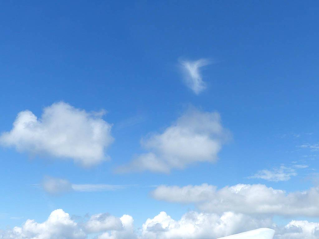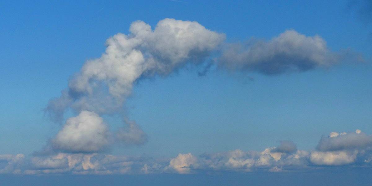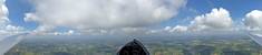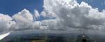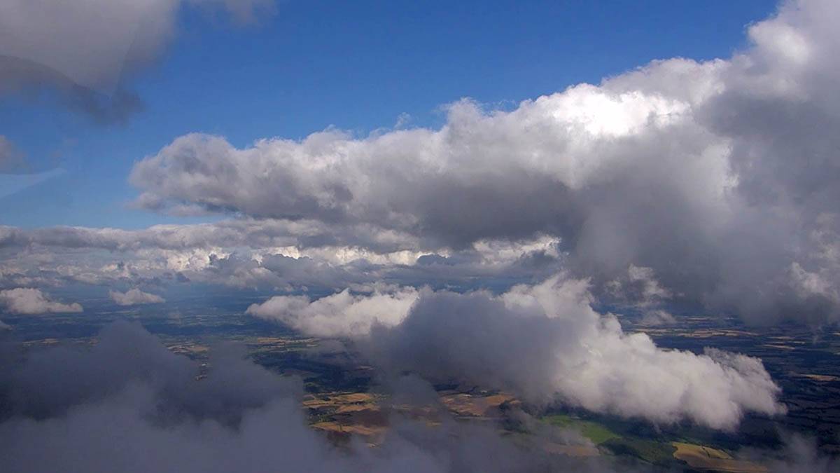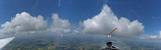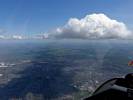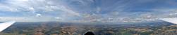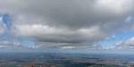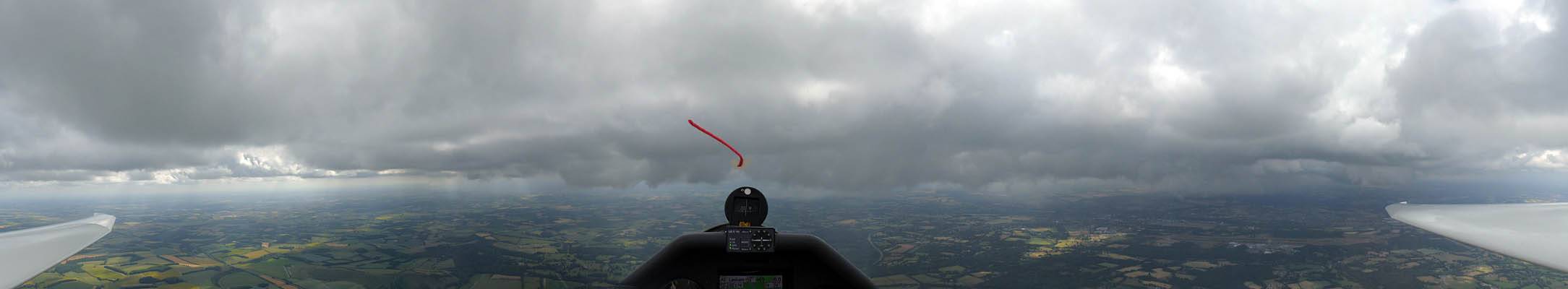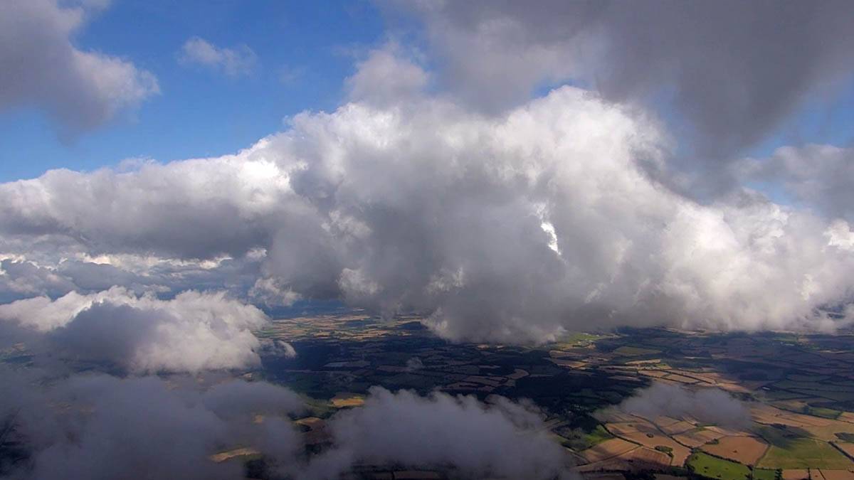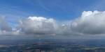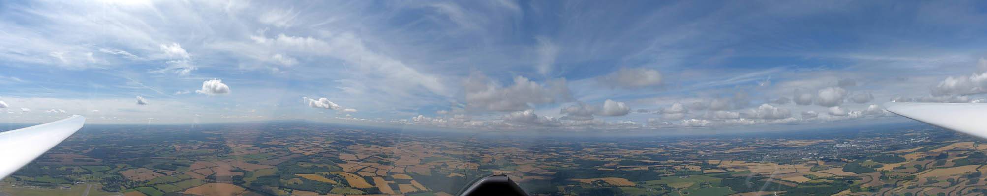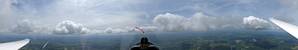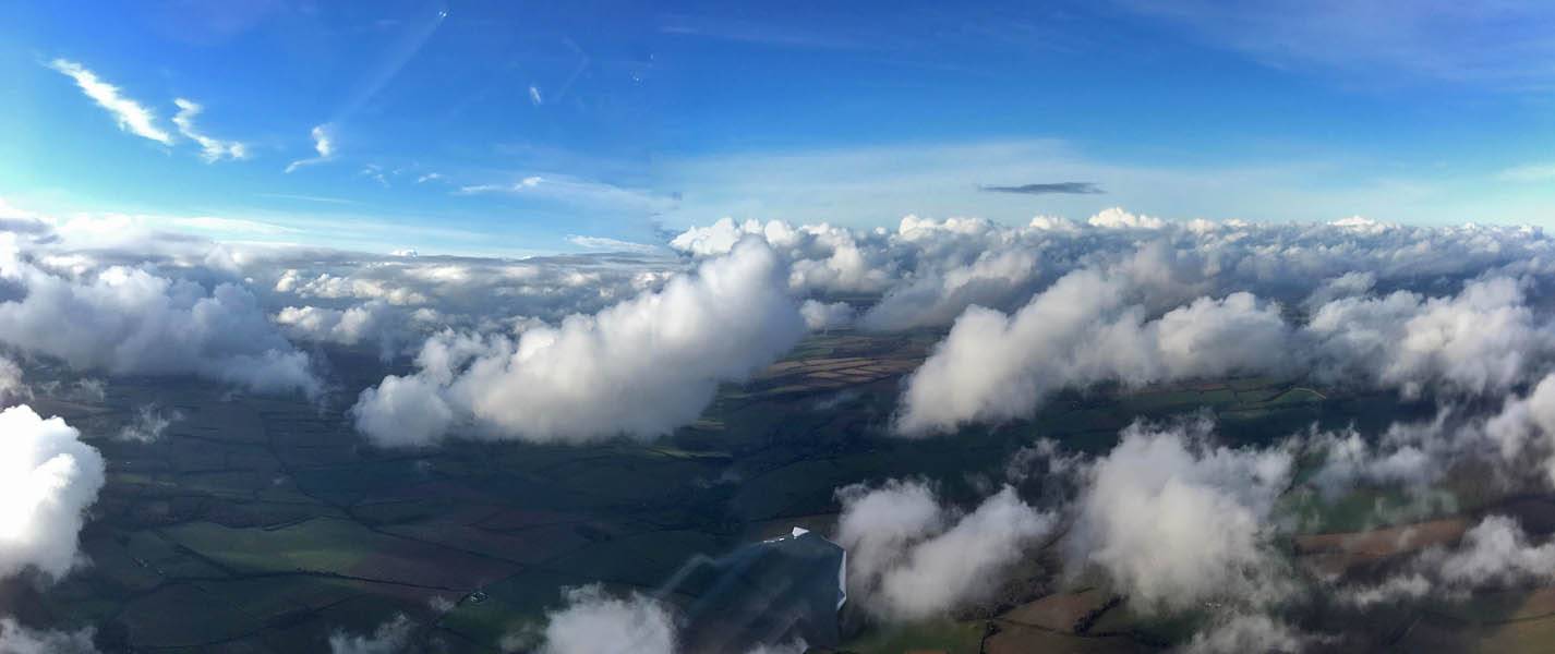 A quick GoPro panorama before I put it back on the suction mount. | Looking Northeast over small clouds to Lasham Airfield. | A more spectacular building cumulus cloudscape. | This cloud looks like a passing cloud seahorse. Or is it someone reclining in a hammock? |
