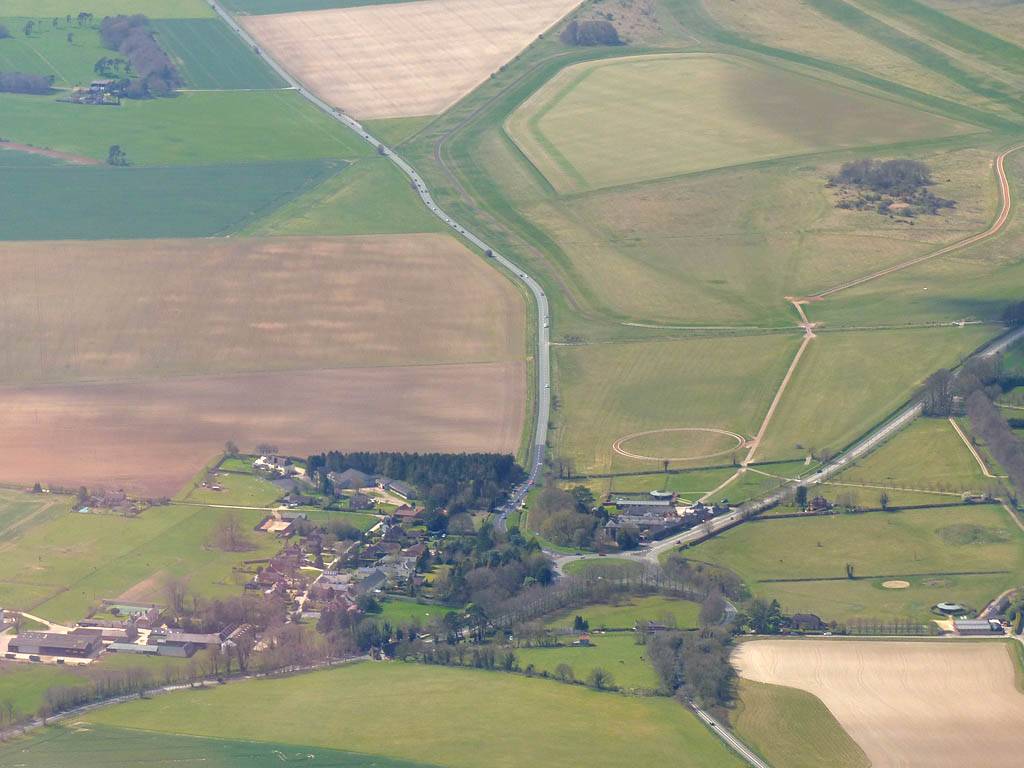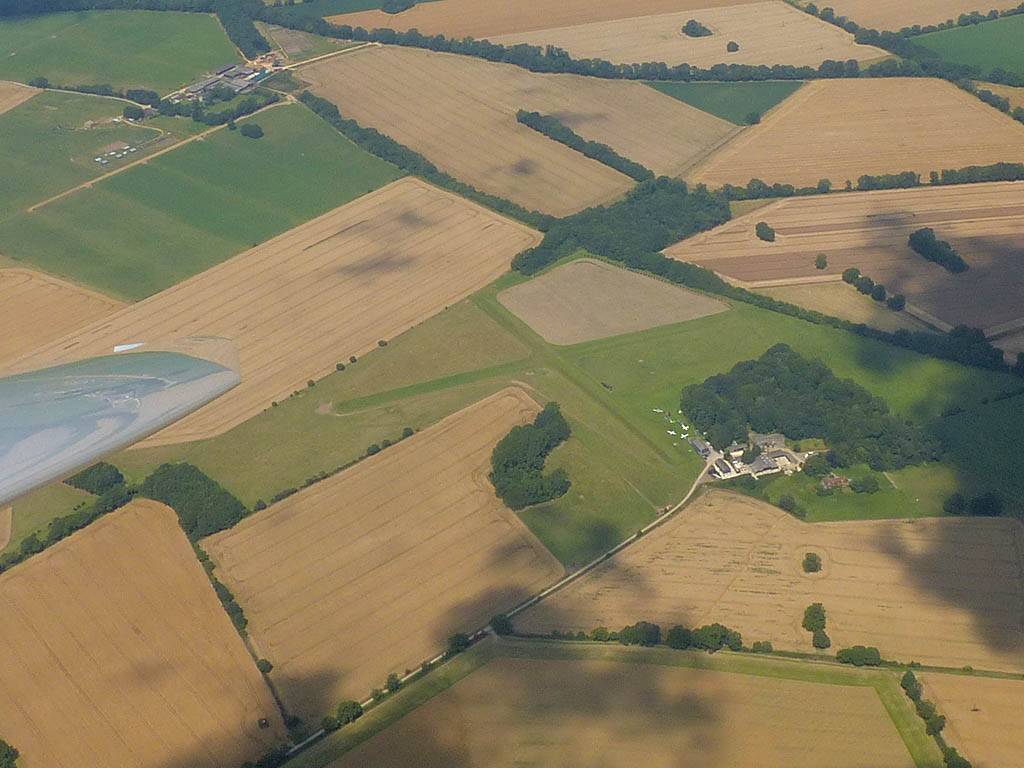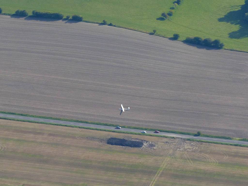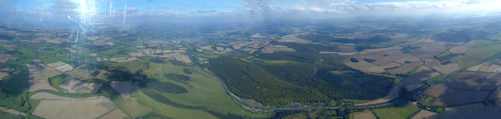 Burbage from the Southeast. | Marlborough from the South with Swindon in the background. | Beckhampton from the Northeast (near Avebury). | Soaring with other gliders. | And the street keeps on going. Approaching Lyneham. | Lyneham panorama from the North-Northwest. That's a lot of solar panels! |