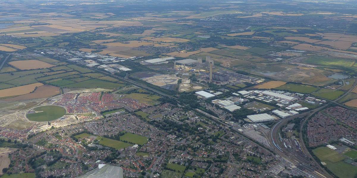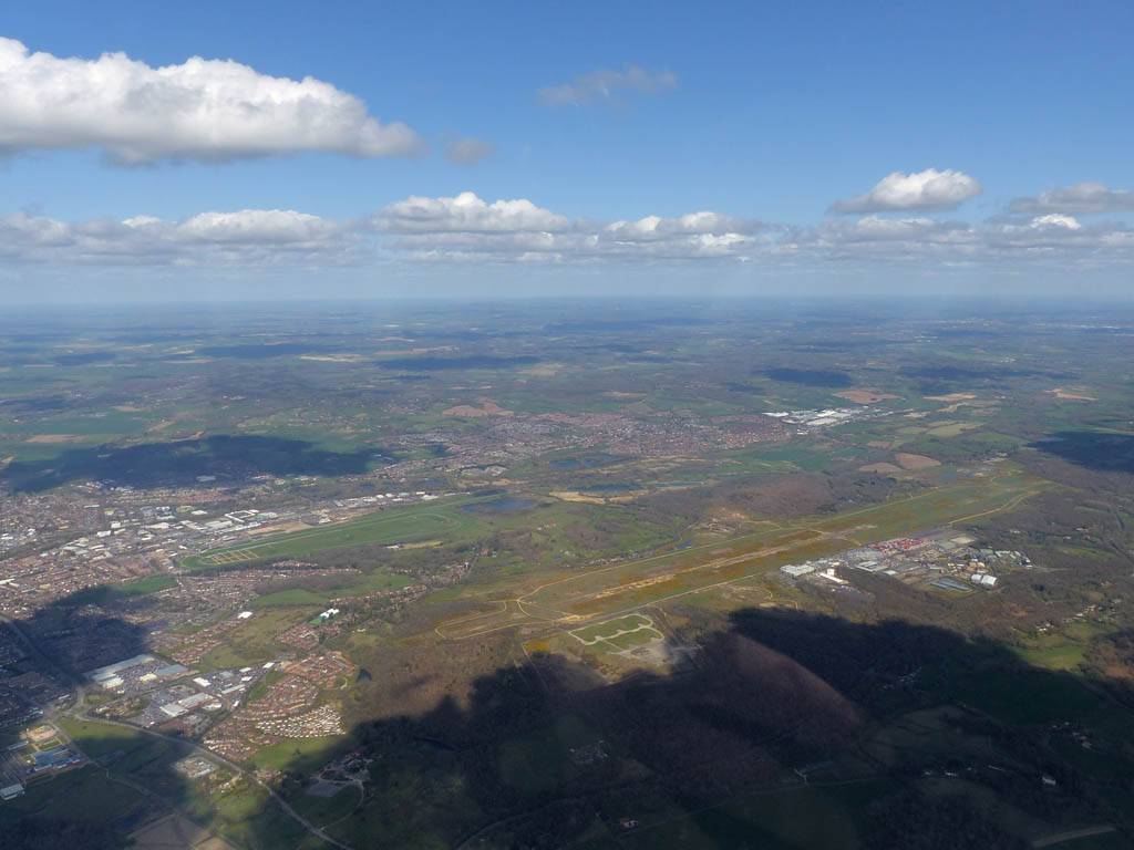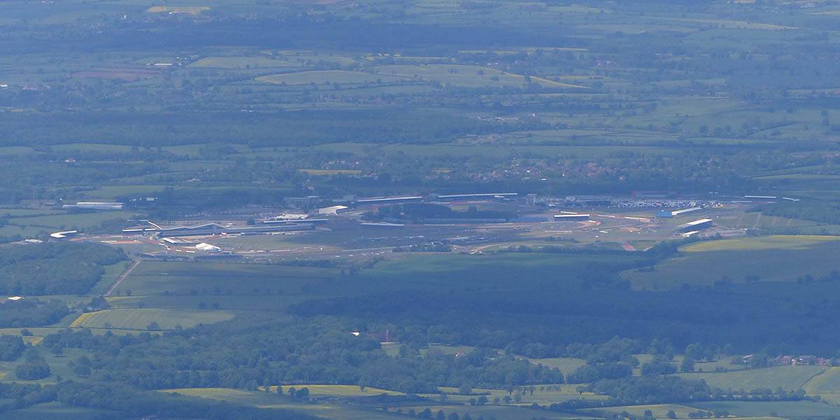 Turning Basingstoke, looking Northwest. | Didcot was visible far to the North. | Membury airfield from the East and East-Southeast. It too has sprouted lots of solar panels! |