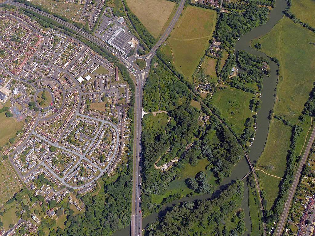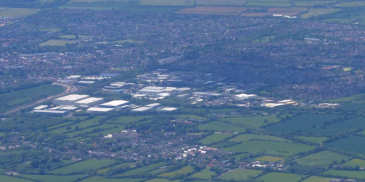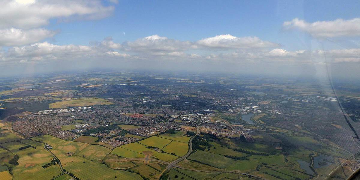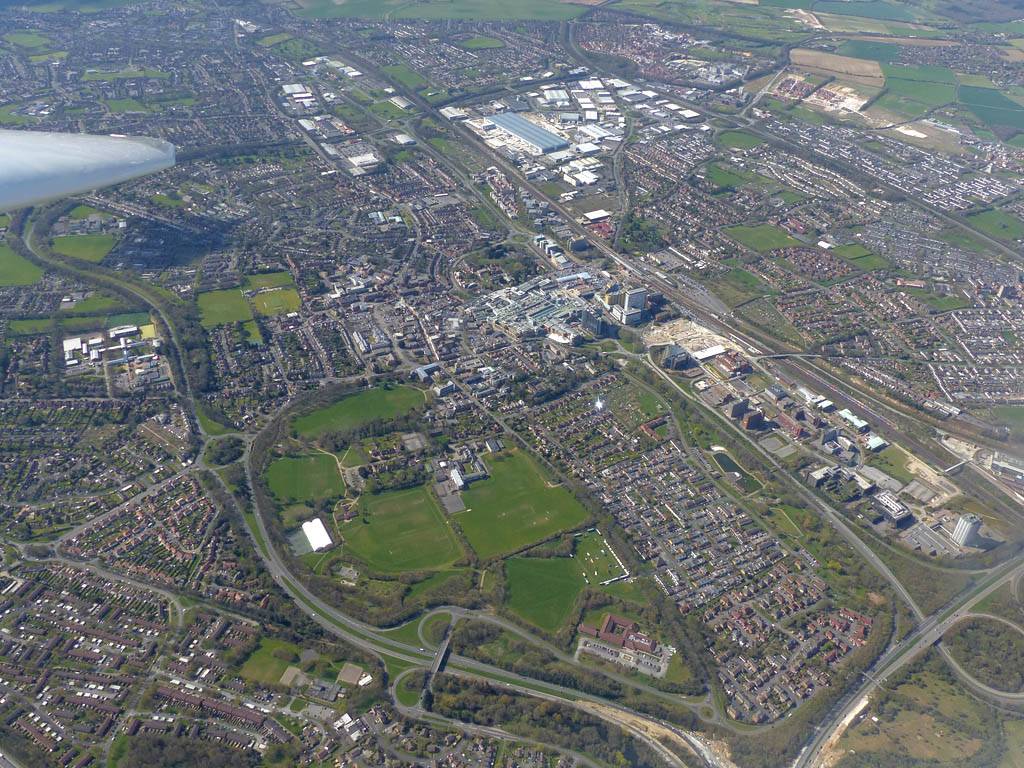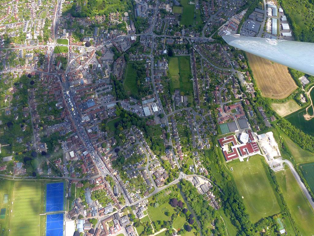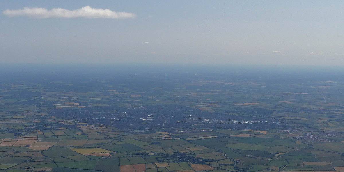 Swindon from the Western side. | Flying alongside SH2 near Swindon. That was fun. | Newbury and Greenham Common from the Southwest. |