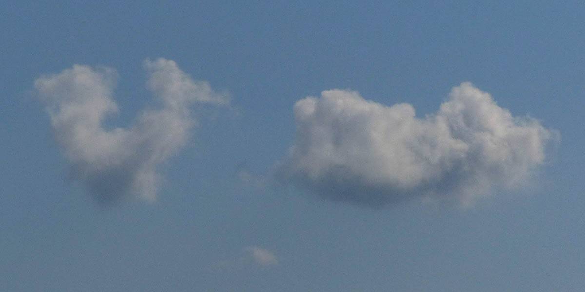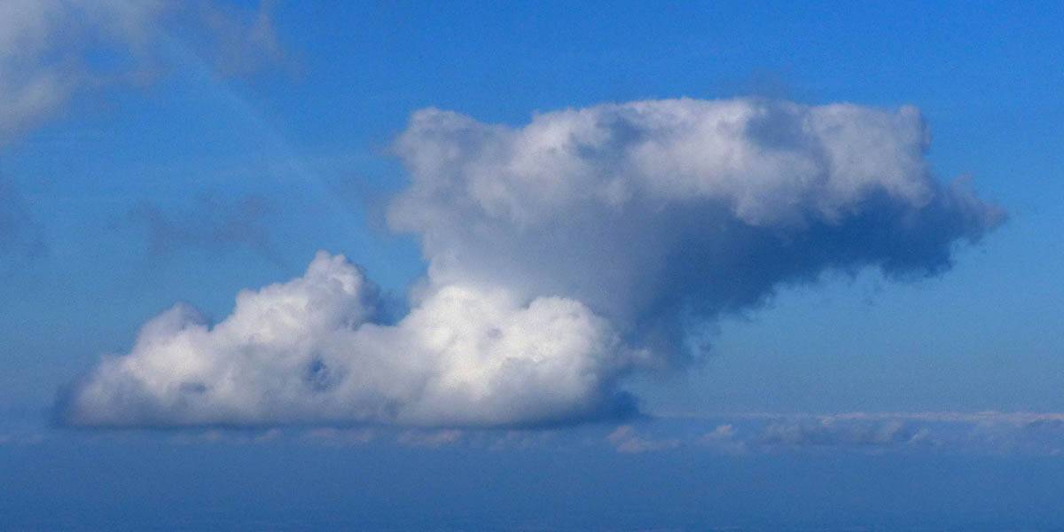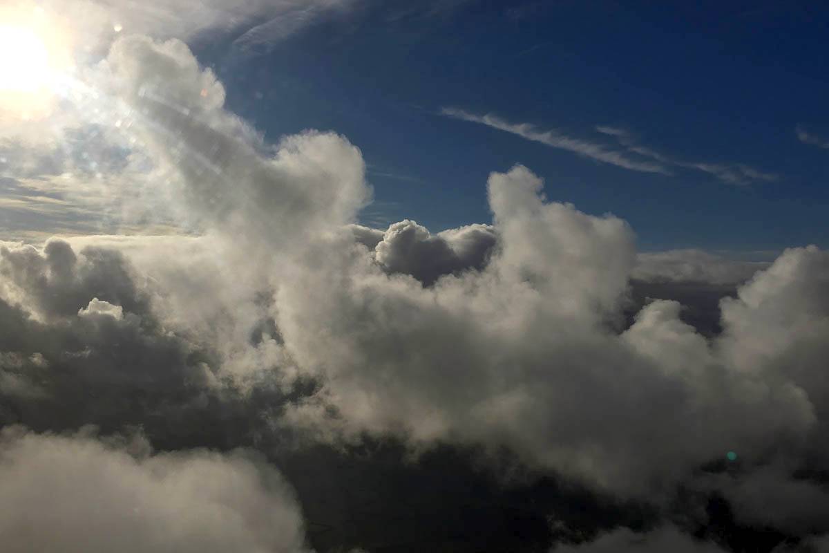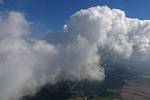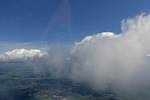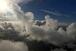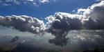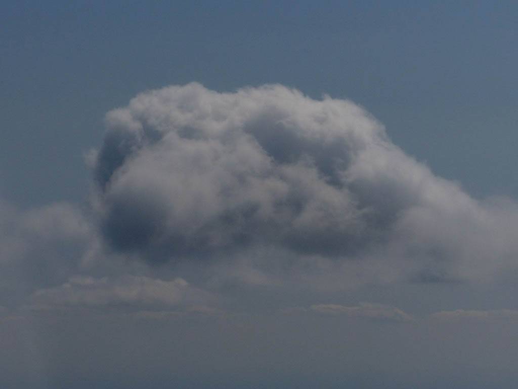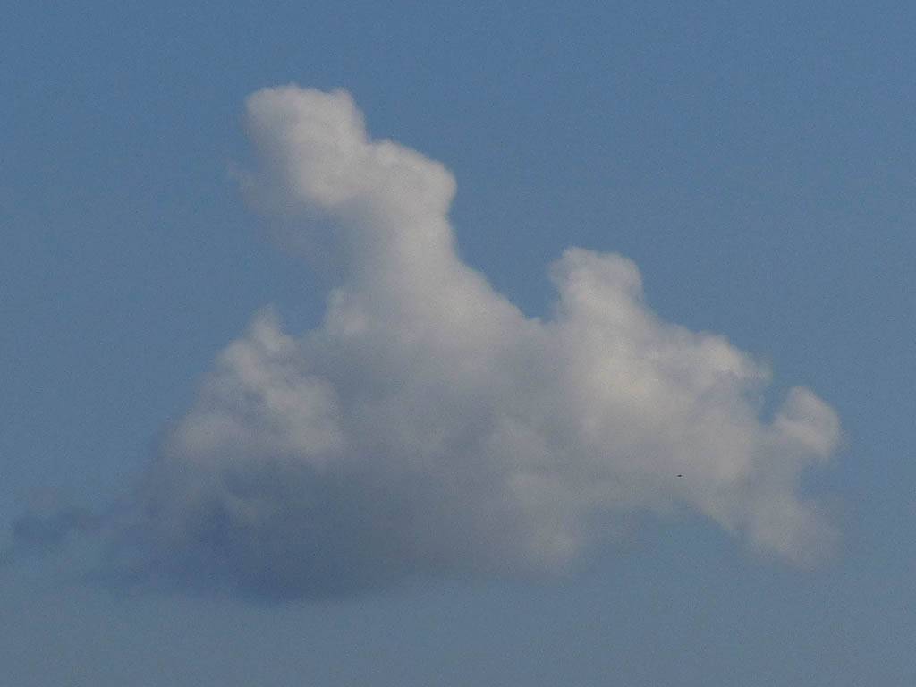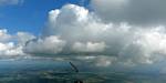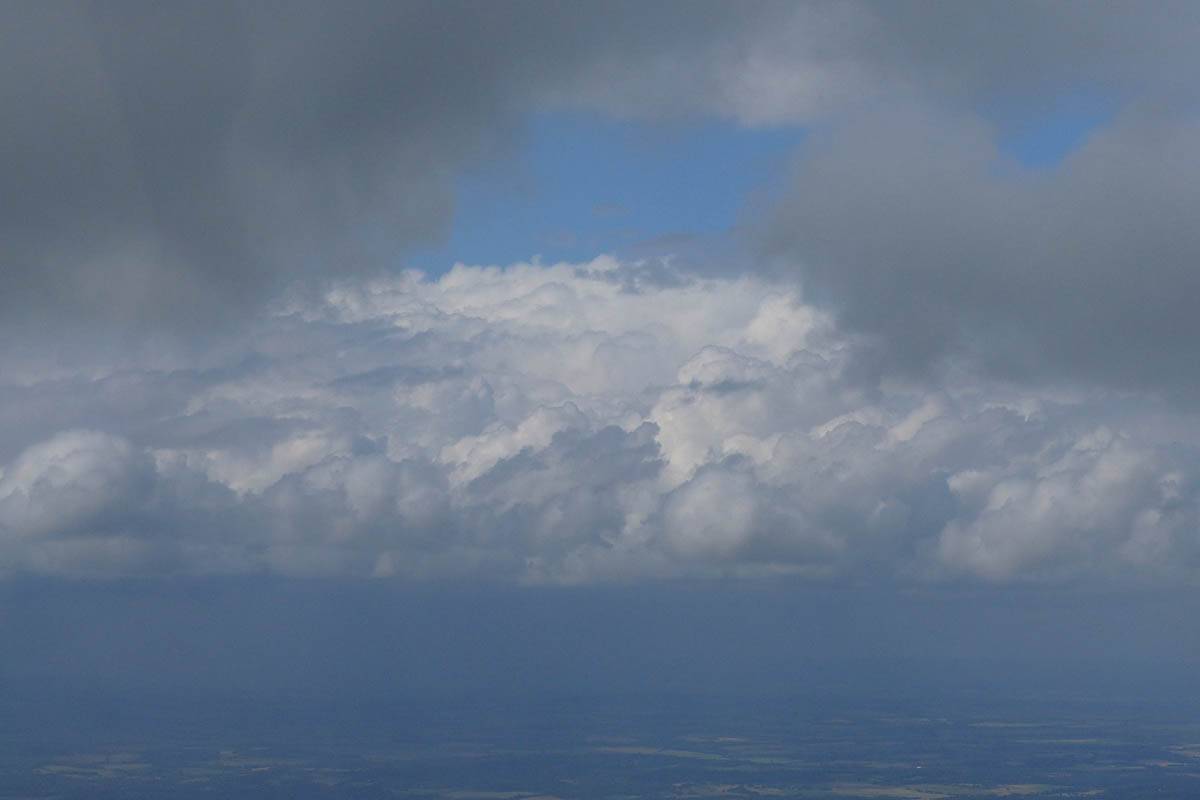 A cloud jelly bear waving at me. | Another view as I descend past the cloud tops. | Clouds growing over Lasham airfield. | Upwind showers are building, providing more heavenly views. Photoshop Elements' highlights and shadows tweaking tool rescued these from very high contrast to bring them in line with what my own eyes saw. |