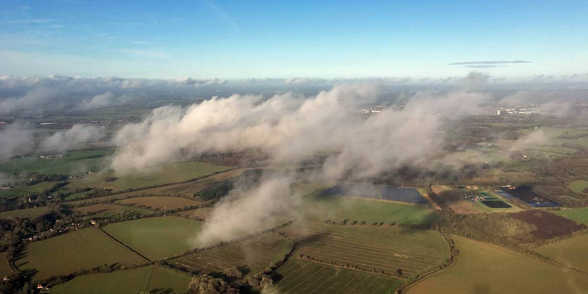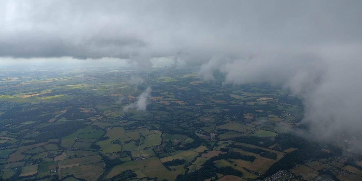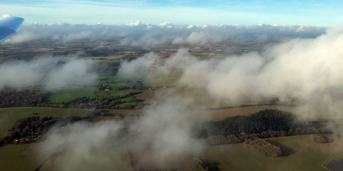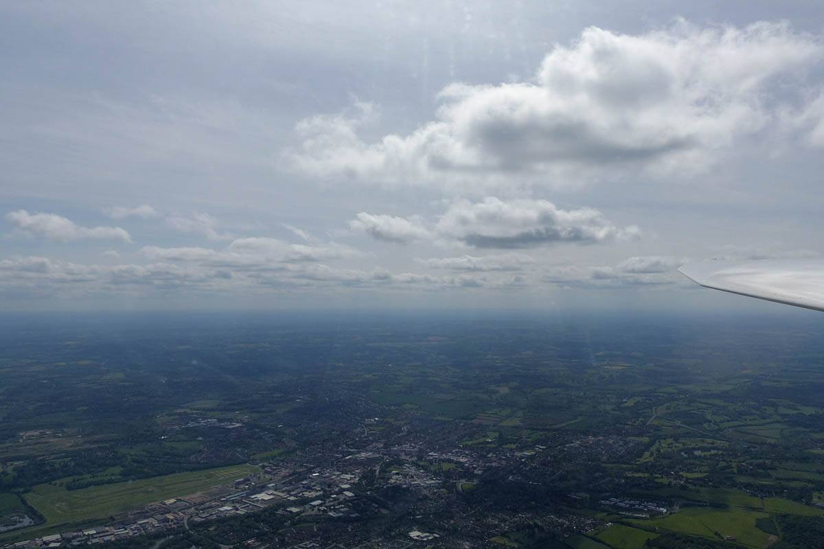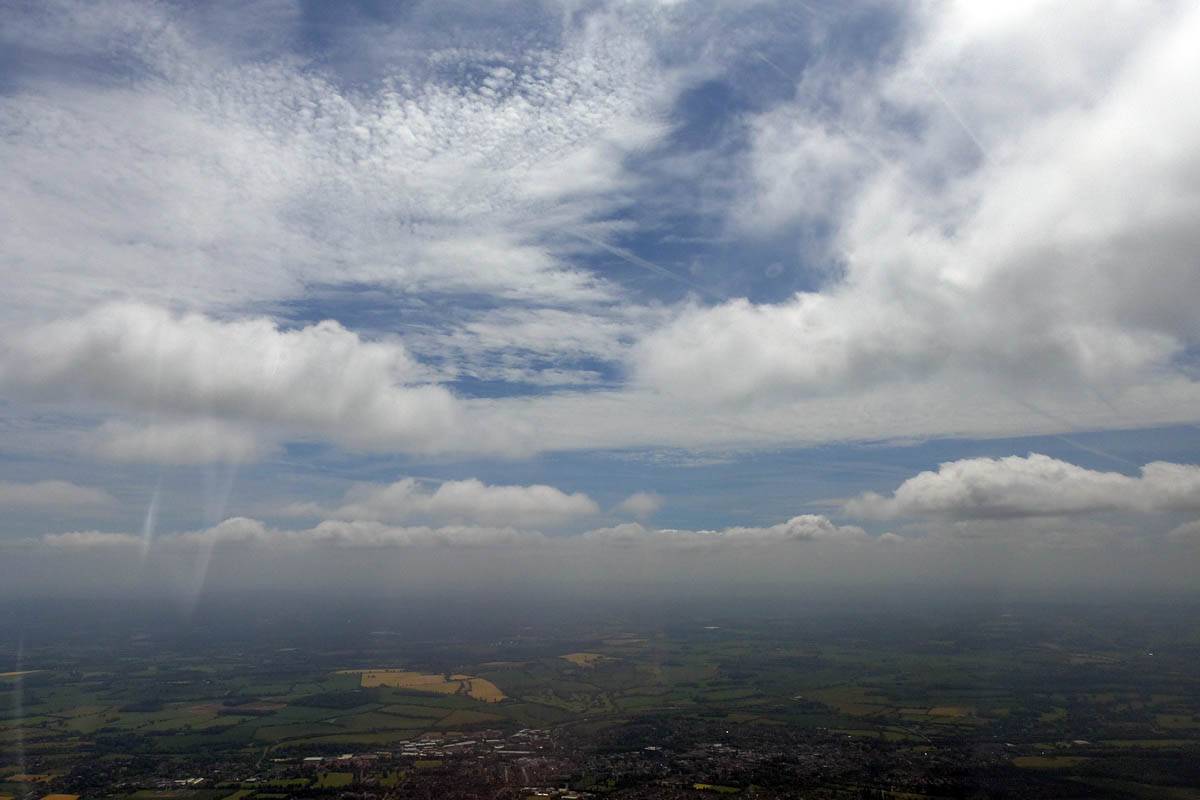 A closer look at Bicester from the East. | Looking Southeast towards Lasham and South-Southwestwards from just North of Newbury as the clouds get shallower and top cover thickens again late in the day. Time to head home. |