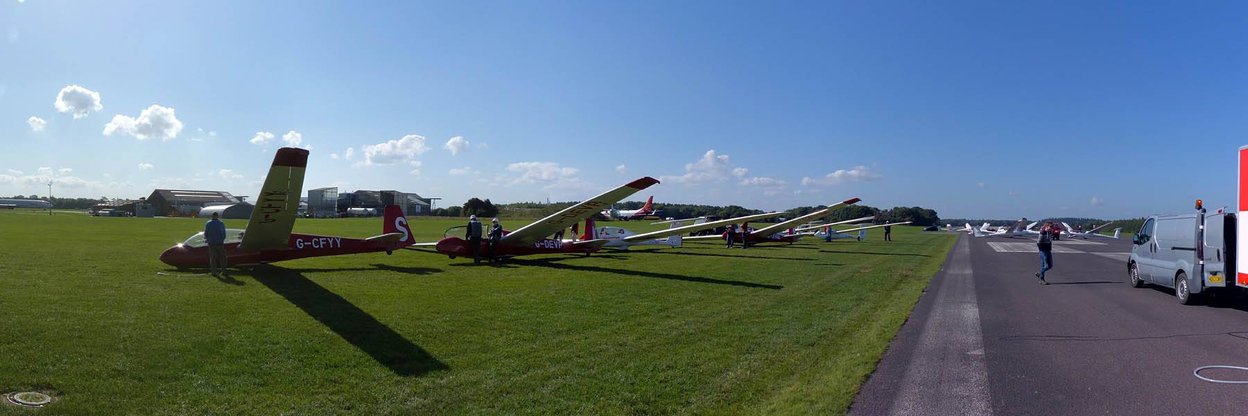 Looking around the launch point before it gets soarable. Discus SH3 is my steed today. | Cumulus starting to pop to the Southeast forming interesting shapes. | A large grid ready to be thrown into the sky as soon as conditions are good enough. | The winch launch queue growing in length as conditions improve. |