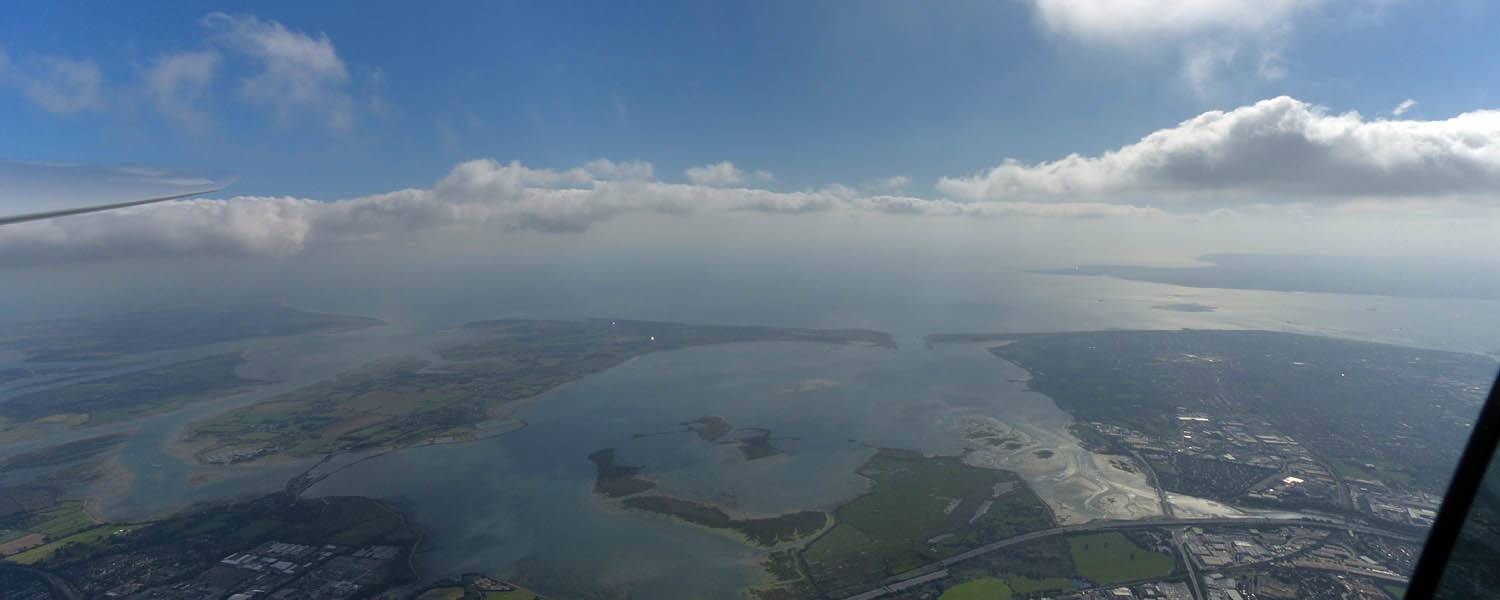 Looking back Northeastwards inland from over the M275. | 360 degree panorama taken while soaring over Portsmouth Harbour. | Two other gliders joining me in the Portsmouth Harbour thermal. | Another Portsmouth / Gosport panorama as I take in the lovely views. |
