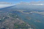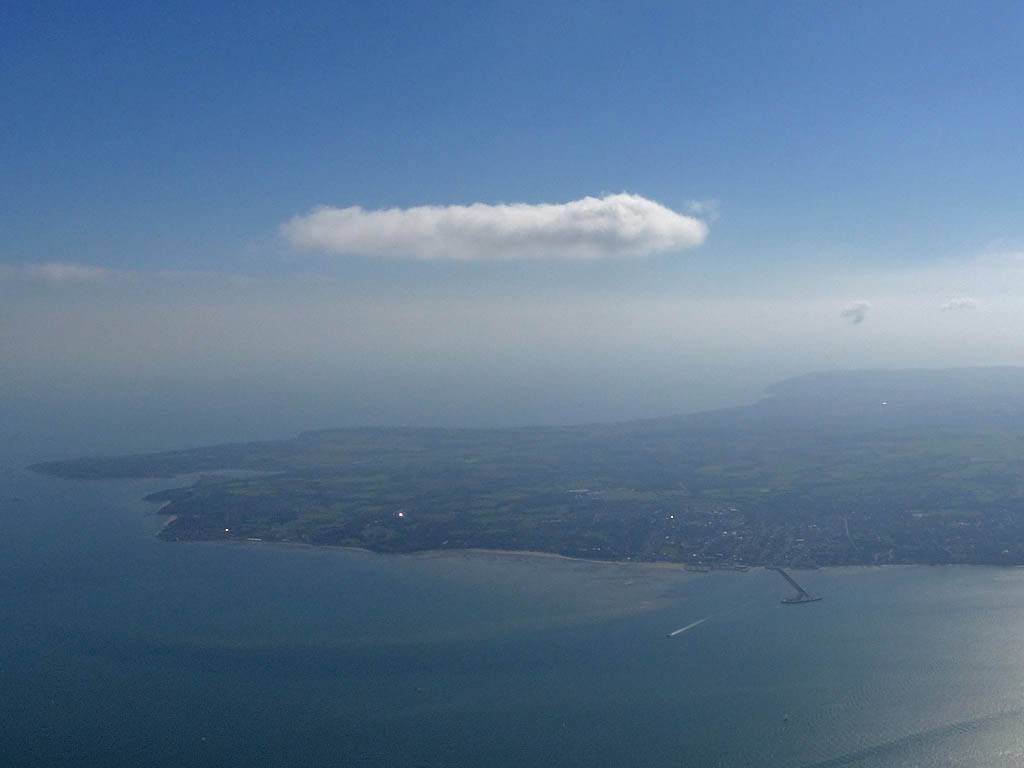 To the West of me is Lee on Solent airfield and gliding club. | Cumulus over the Solent. I did go over to it but struggled to climb. With it being blue beyond I retreated back to Gosport. | Views of Portsmouth Harbour from the Southwest, over Gosport. | Turning PTR (Portsmouth Tower). It's hard to see from directly overhead but the Spinnaker Tower's shadow gives it away. View from the Southeast. |
