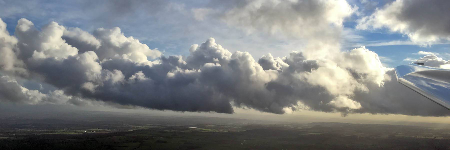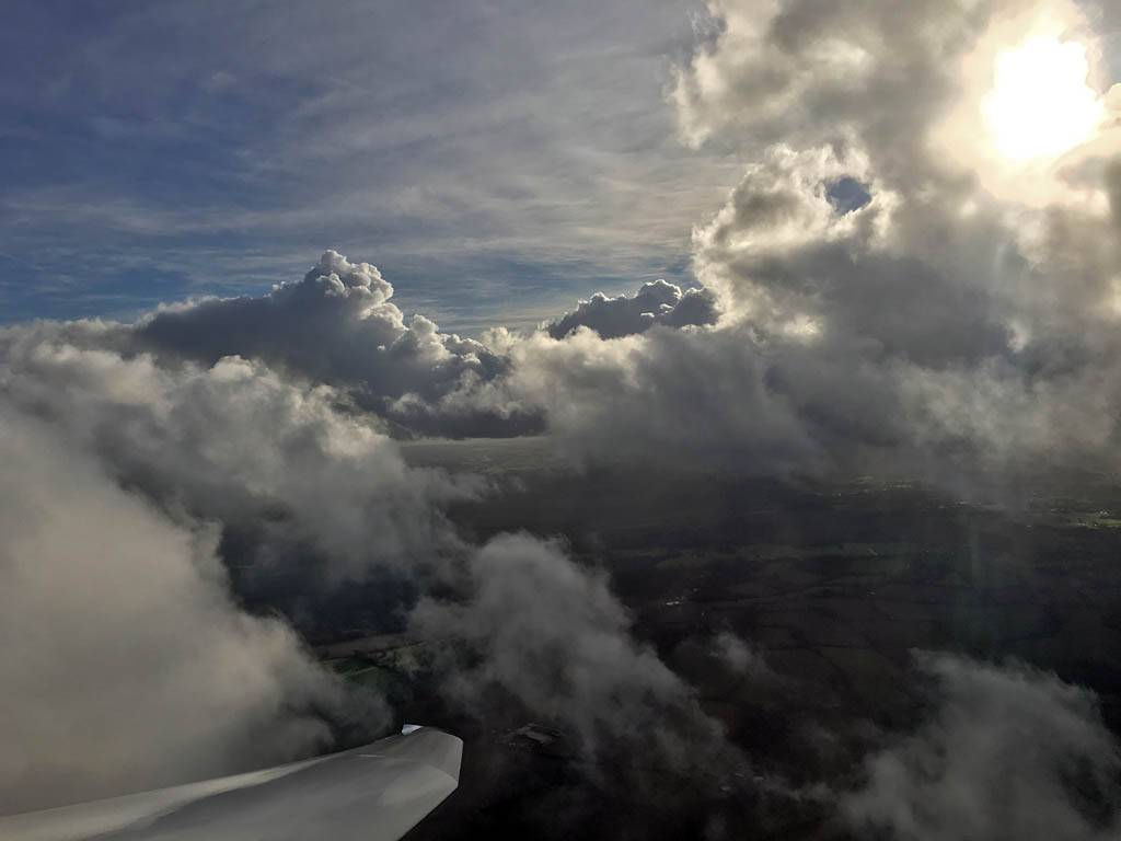 After a long grey and damp autumn and winter so far, I was keen to make use of this weather window. At first I thought it had gone wrong as showers hit the airfield early on. However the day brightened up and patchy cumulus formed quite low down. This made my winch launches rather more interesting than the usual winter hops. Then I decided to aerotow to 4000 feet with showers building upwind. The tuggy duely towed me upwind where the cloudscapes from up there were amazing! I thoroughly enjoyed that flight. As a bonus, on the way down, after having fun flying between the clouds, at cloudbase I found some thermals and was able to soar between 1700 and 1800 feet for 10 minutes before I got rained out of the sky. What a fantastic way to end the year. My best ever December flight.