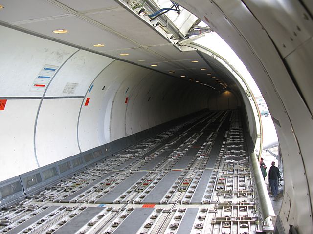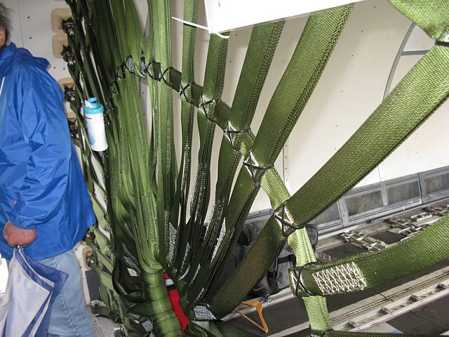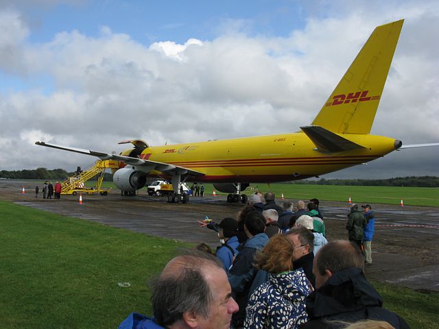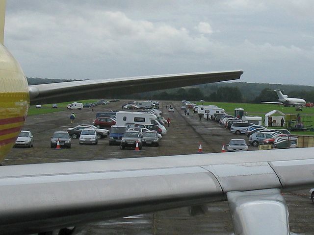 A closer look at the medium runway. Lasham's never seen anything like it before. More cars parked on the short runway too. | Views into the 757. No seats or windows here as freight doesn't need them. | Looking inside the 757 cockpit and sitting in the co-pilot's seat. |