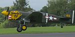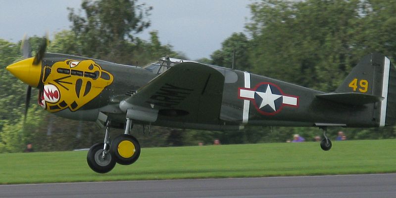 The P40 Kittyhawk departing. | More shots of the P51 Mustang. | Queueing for a tour of the 757. | A Bell 47 helicopter performing an aerial display. | The BDFA's Bulldog performing serobatics. |