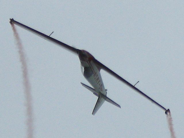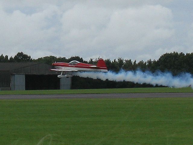 The BDFA's Bulldog performing serobatics. | Unusual views of a 757 that joe public doesn't normally see. | Aerobatic display by an RF4 plane with smoke guns on its wingtips. |