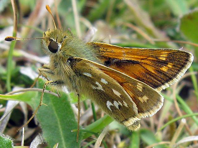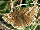 Green Hairstreak and Male Duke of Burgundy seen at Ivinghoe Beacon. | One of several Grizzled Skippers seen at Bison Hill. |