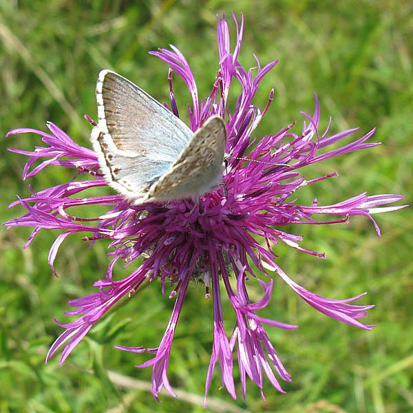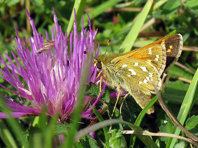 A Chalkhill Blue on the East slope of Sharpenhoe Clappers nectaring on Knapweed and sipping salts from some faeces! There were also Marbled Whites, the odd Dark Green Fritillary, other Whites and plenty of 6 Spot Burnets on the wing too. Plus a pair of courting Speckled Woods in Heartwood Forest near St Albans and Silver Spotted Skippers on Bald Hill, Aston Rowant NNR in the Southern Chilterns.