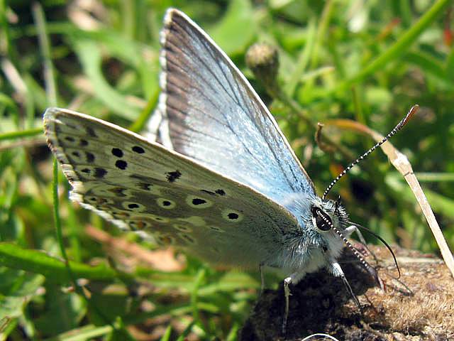 Male Chalkhill Blue | 3 shots of 1 Male Chalkhill Blue | Pair of courting Speckled Woods. |