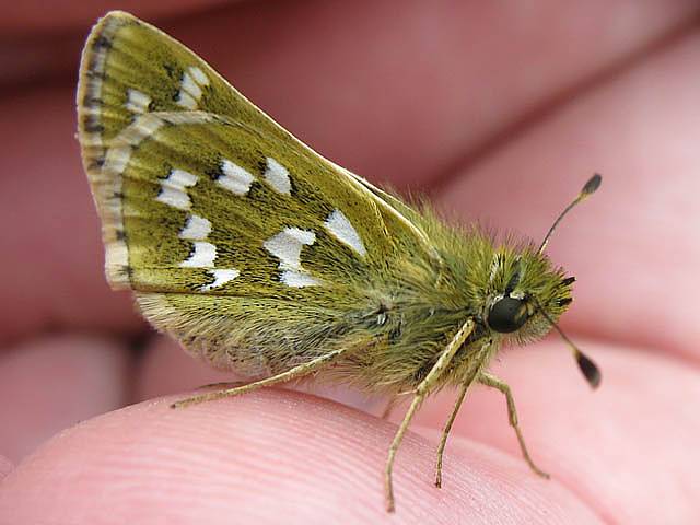 Silver Spotted Skippers on Bald Hill. The one on the hand gladly seeked warmth when it clouded over. The middle two are Males. |