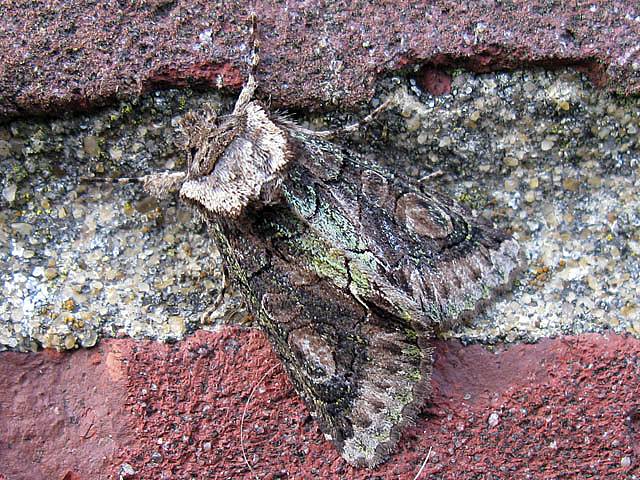 A Green-brindled Crescent moth rescued from the clubhouse at Lasham Airfield. Interesting the way it camoflages so well against the brick wall.