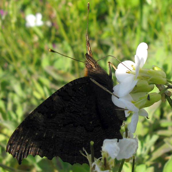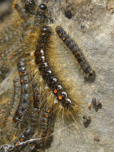 Brown Tail moth caterpillars in a larval web on Sea Buckthorn. | Small Copper. | Peacock. | Unuidentified 0.5-1cm moth. |