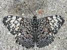 Four closeup pictures of a Small Pearl Bordered Fritillary. |