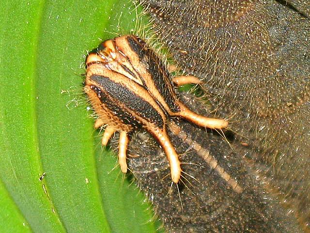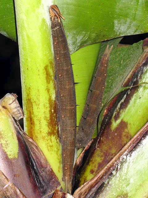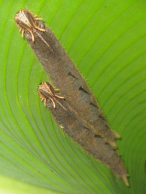 Common (or Great) Eggfly. | 3 shots of Owl caterpillars on a palm tree. |