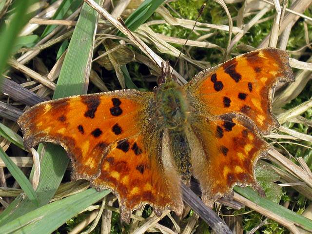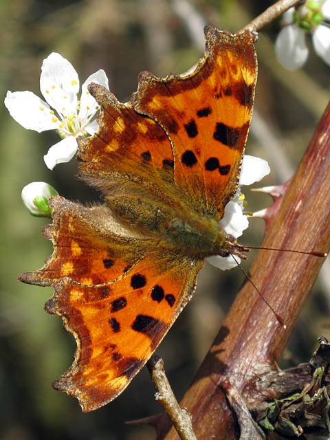 Comma and Small Tortoiseshell on Barnhill. | Comma in Kenton. | Comma, Peacock and Male Brimstone on Barnhill. |